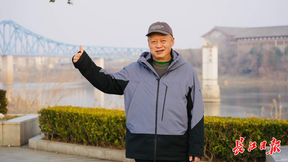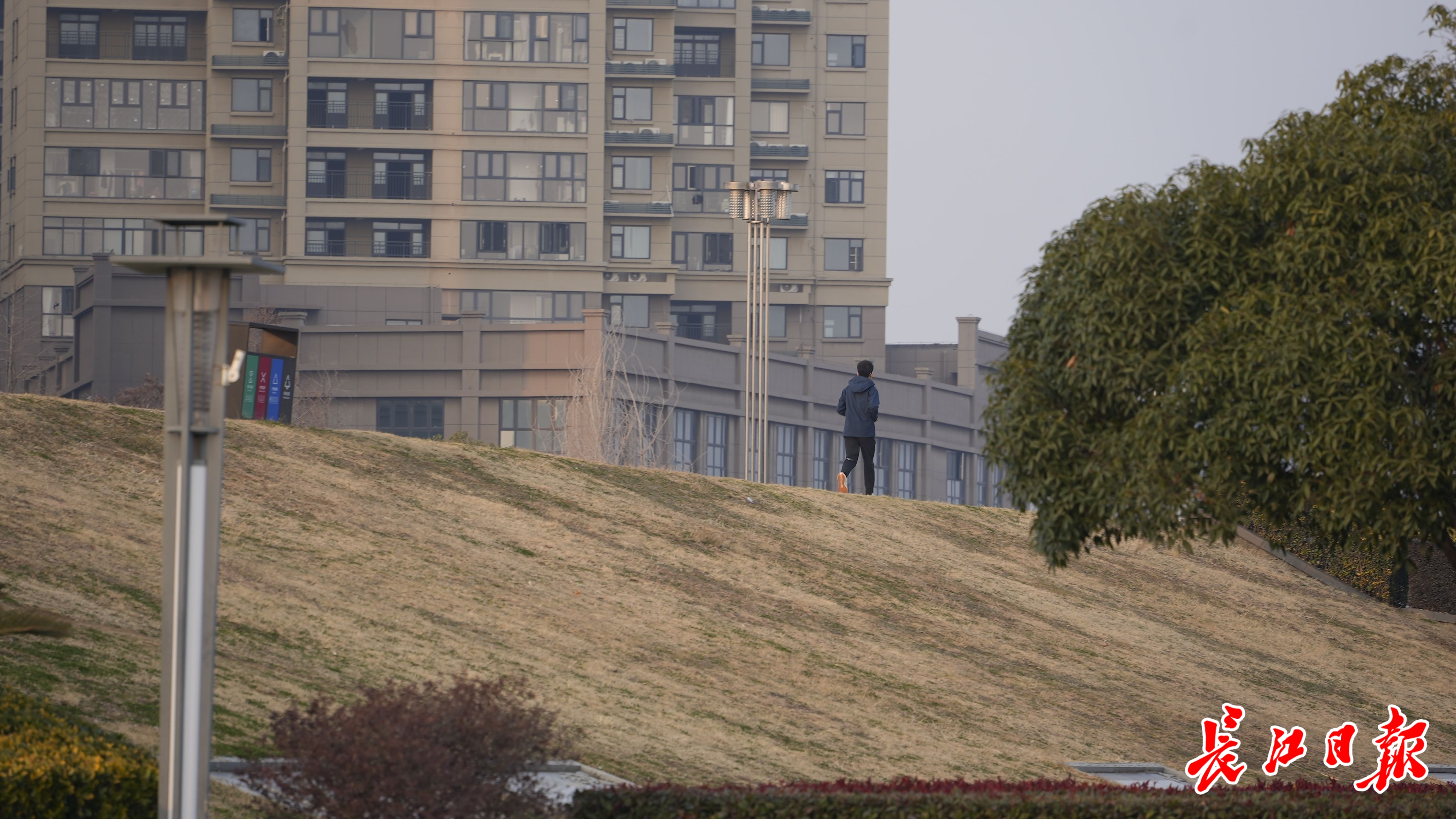 1月24日,刘浩帆的父亲刘绪全在滠水河畔给儿子点赞,刘绪全说儿子每次回来都会到滠水河堤上跑步。 记者高文举 摄
