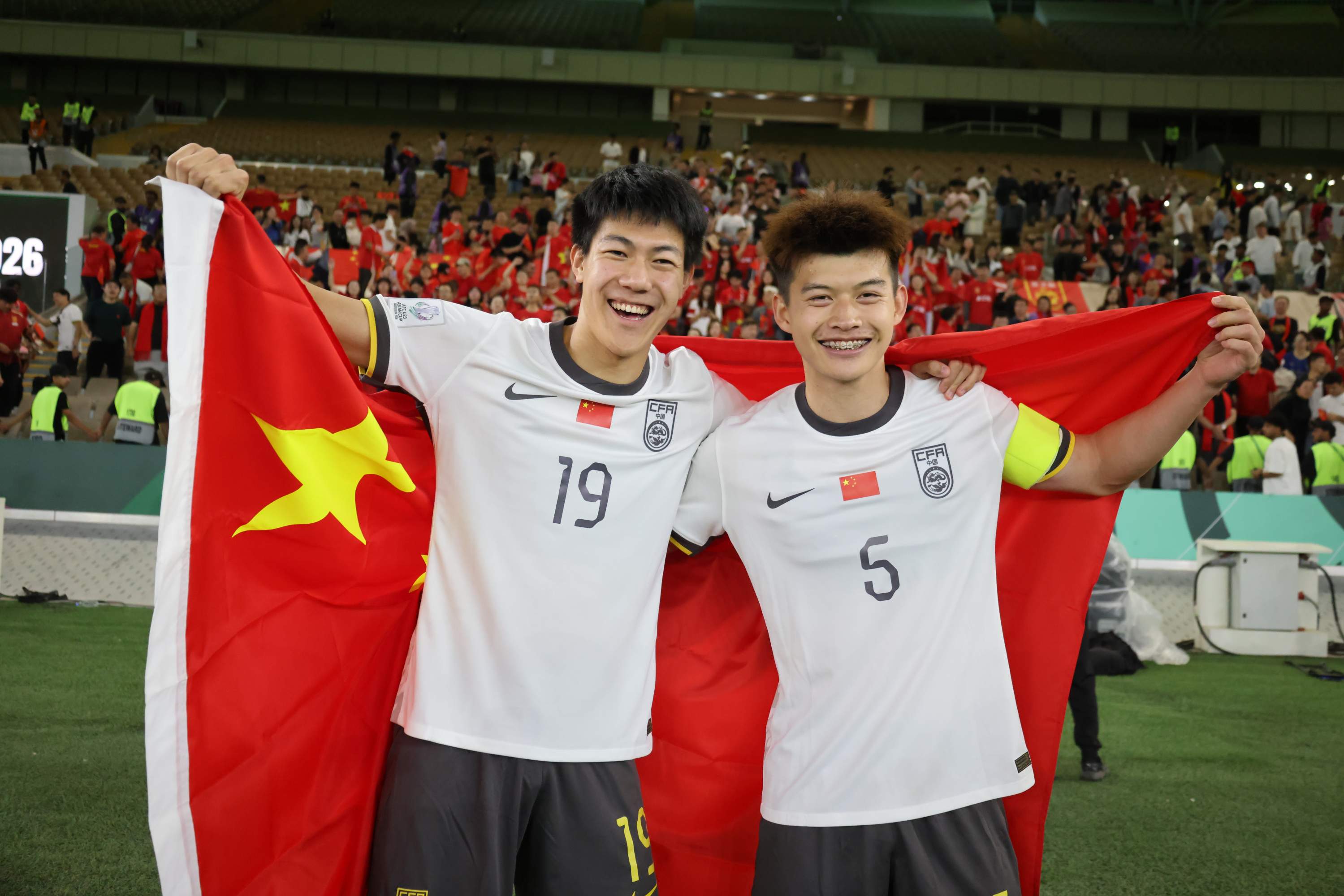 1月20日中国队3-0击败越南队后,刘浩帆(右)将与队友参与今晚的决赛。 新华社发