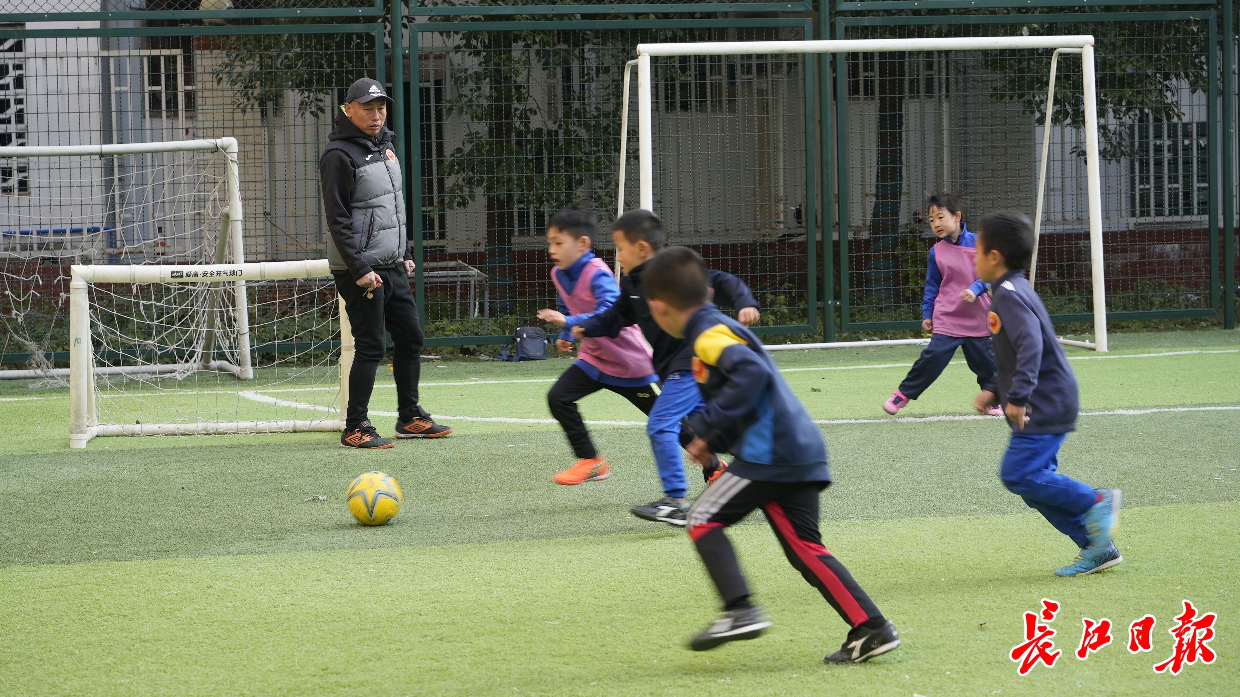 刘浩帆的启蒙教练杨涛在训练小队员。 记者高文举 摄