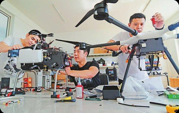 武科大产业学院学生在装配无人机。
