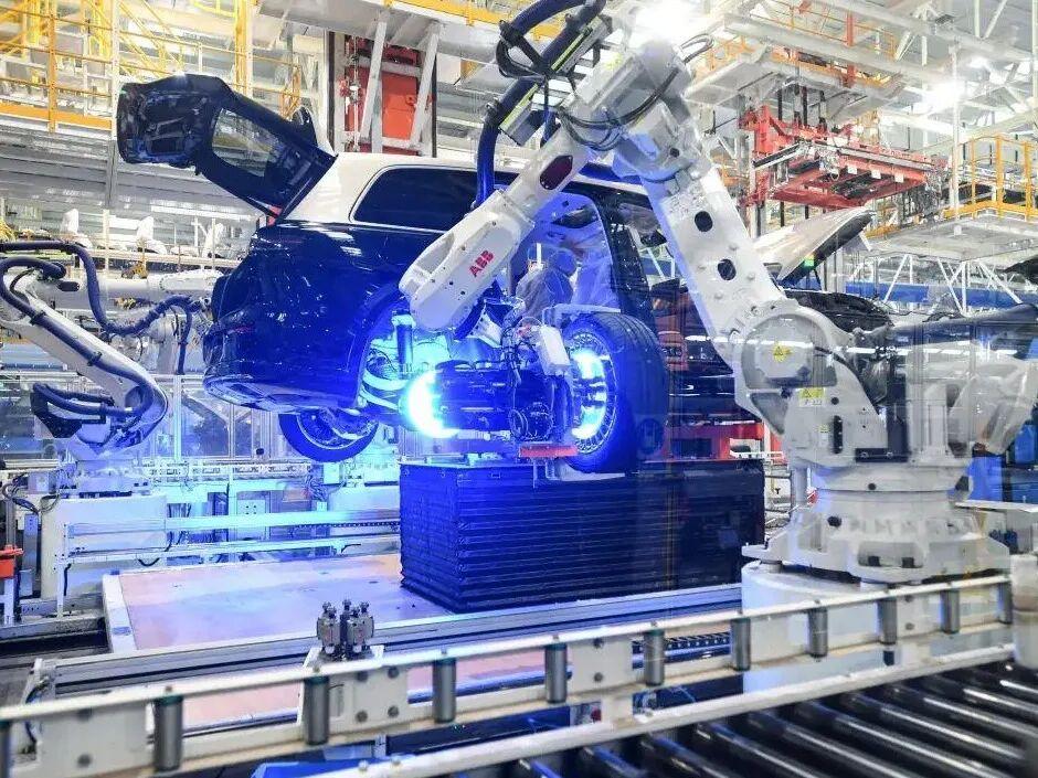 岚图工厂里,自动化机械臂正在组装岚图车辆。 记者史伟 摄