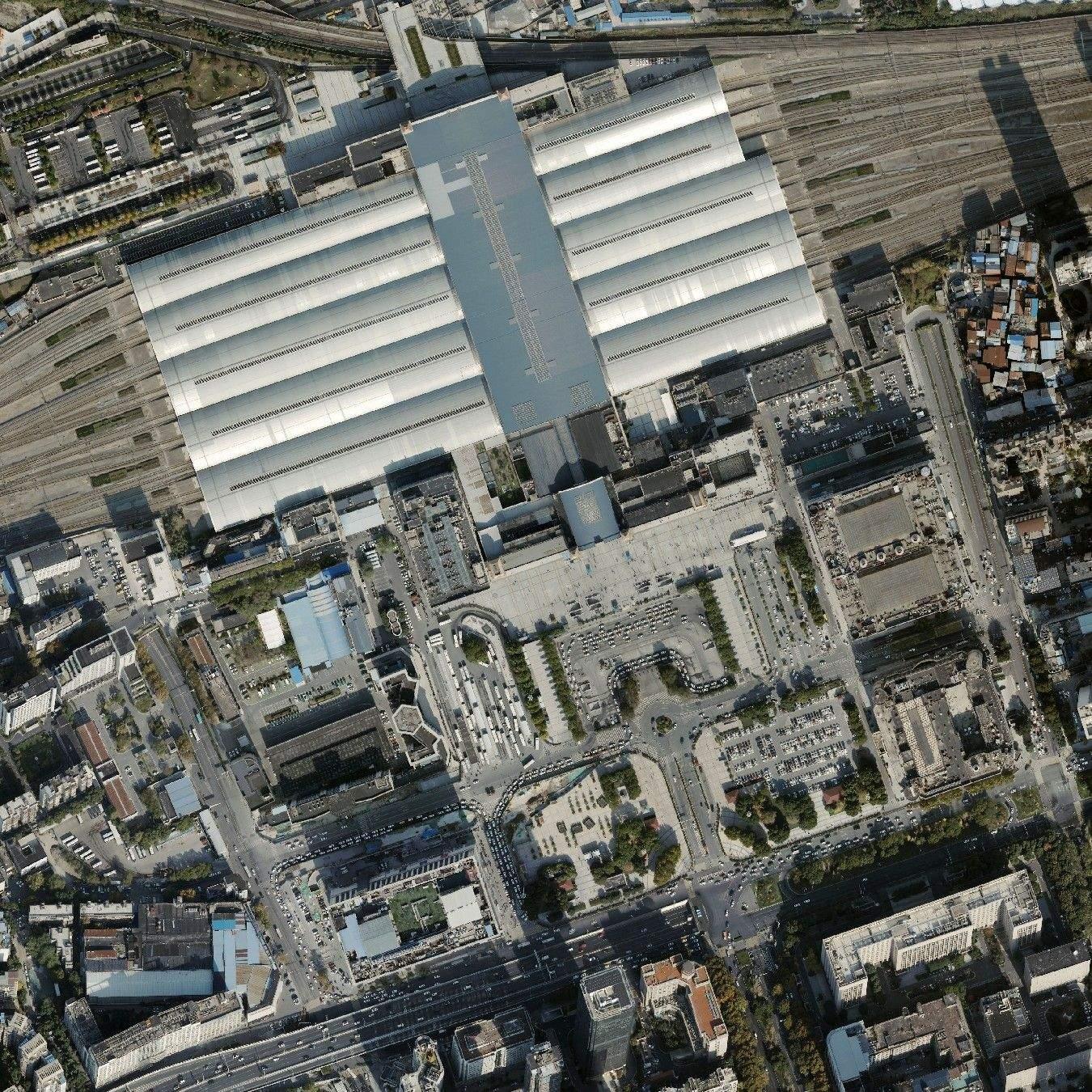 汉口火车站2024年的航摄影像。