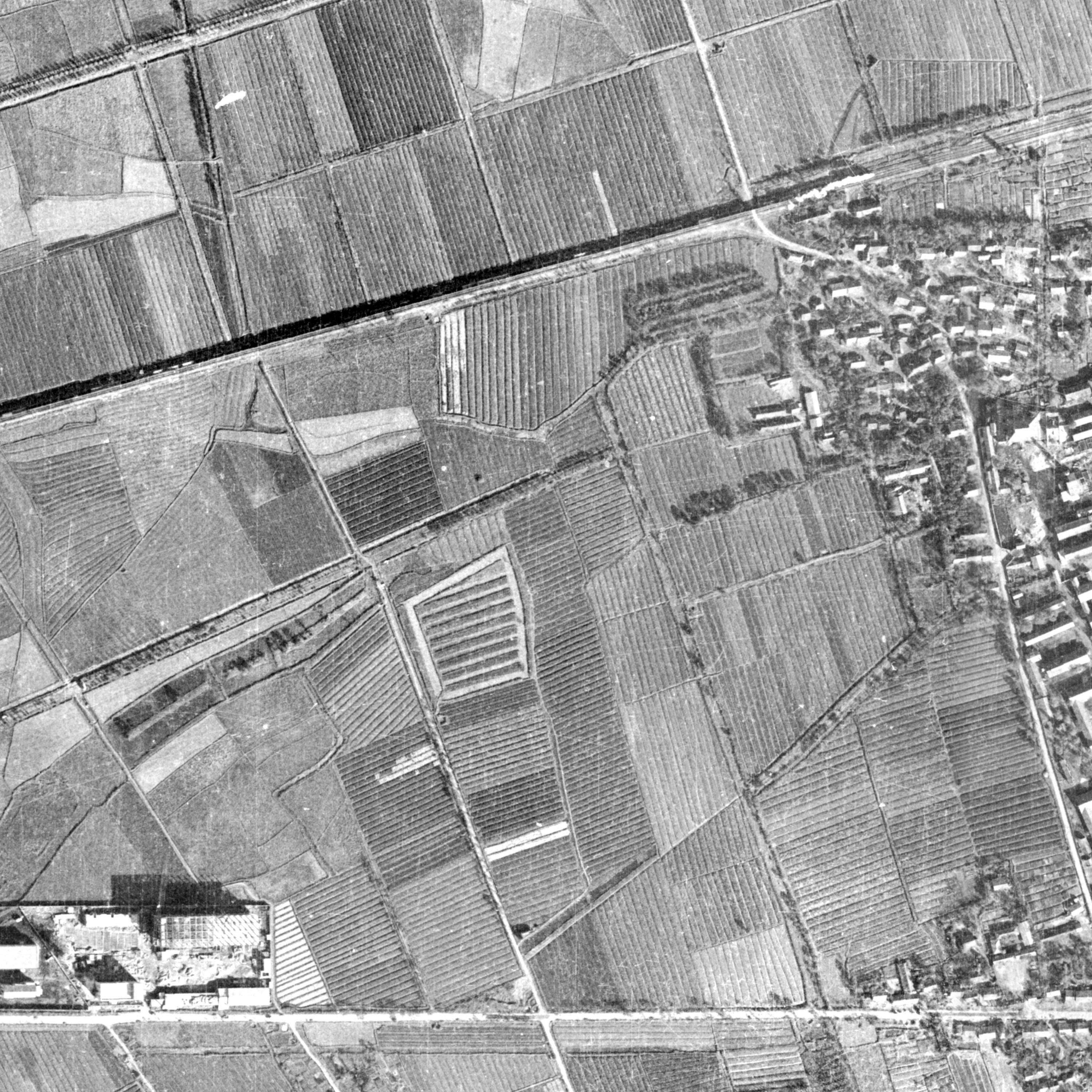 汉口火车站1976年的航摄影像。