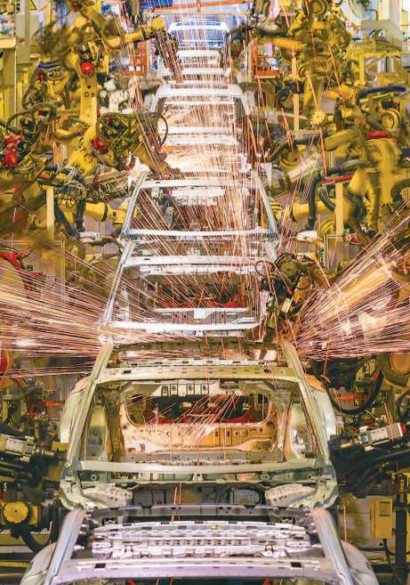 岚图汽车焊接车间里焊花四溅。