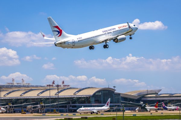 客机从武汉天河国际机场腾空而起。