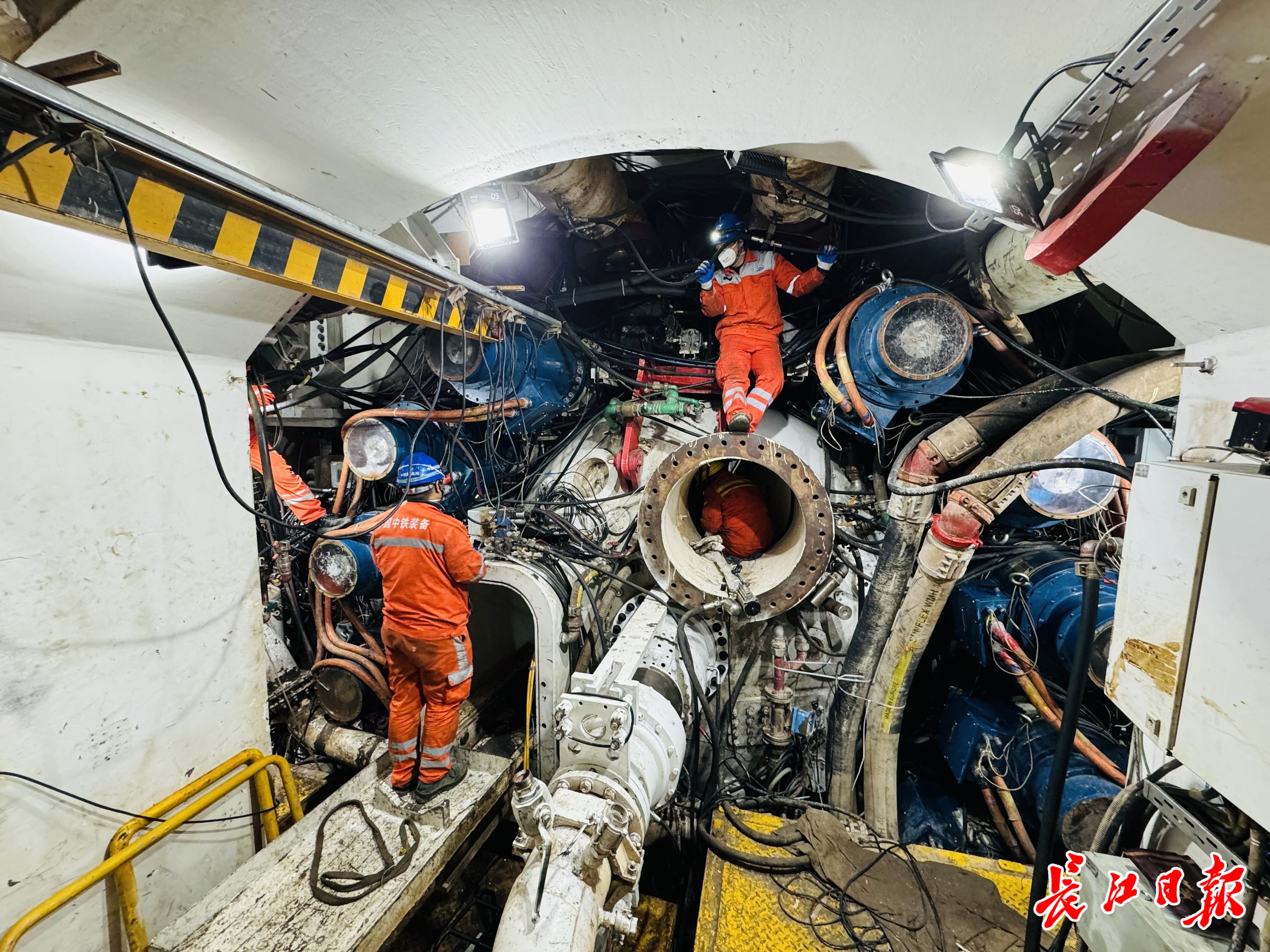 当天上午10时许,长江日报记者深入20多米深的江国路站实地探看,只见一台长约105米、四层楼高的“巨无霸”盾构机蛰伏地下,正在突破岩土桎梏。驾驶舱内,27岁的盾构主司机张浩阳紧盯操控面板,全神贯注守护巨型盾构机平稳掘进。他告诉记者:“我之前承担了12号线越江盾构任务,现在转战11号线,能够参与两次穿越长江的地铁建设,心中倍感自豪。”