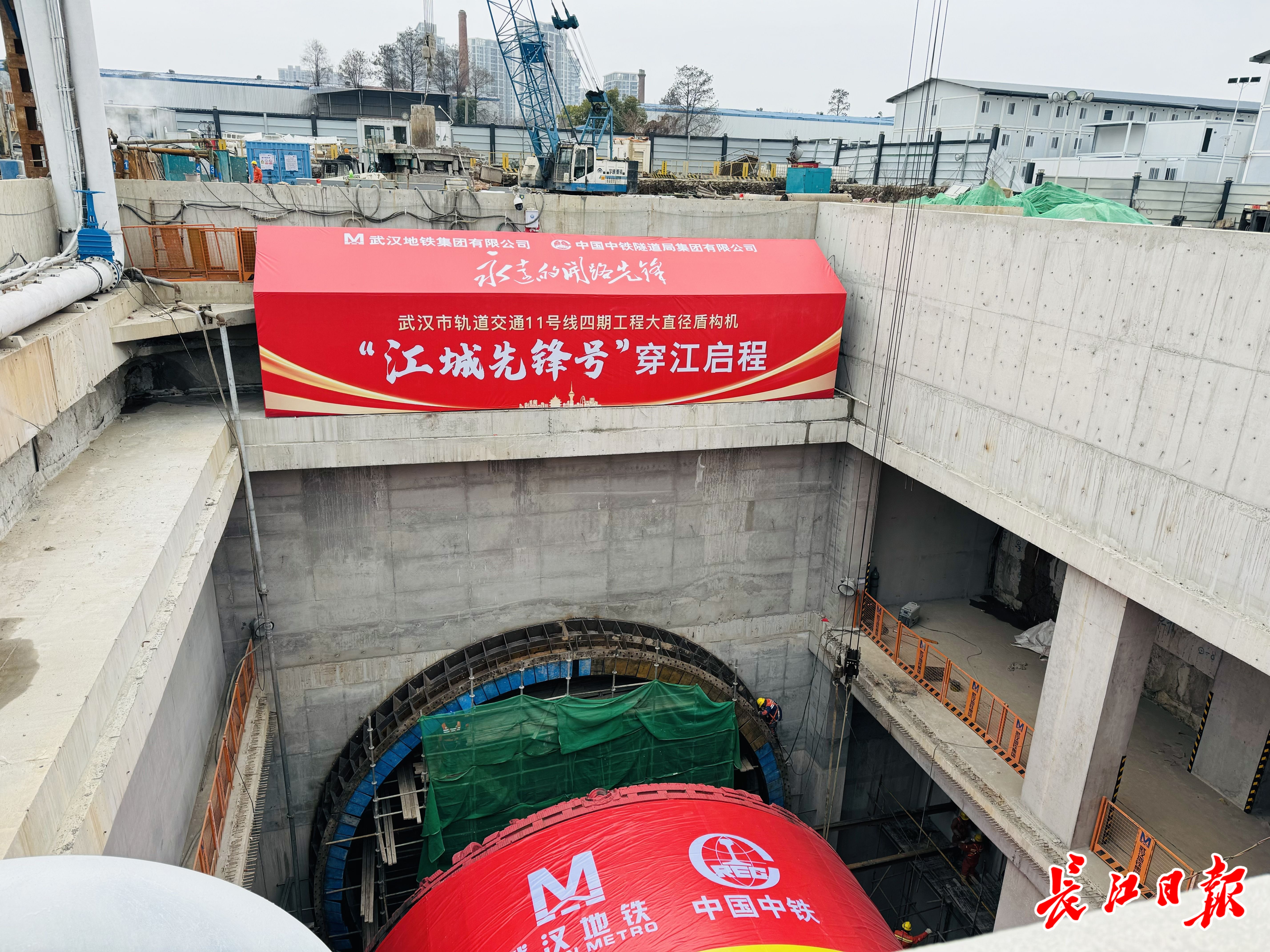 长江日报大武汉客户端1月29日讯 1月29日,随着直径12.56米的“江城先锋号”盾构机刀盘缓缓启动,武汉地铁11号线四期工程关键段——江国路站至国博中心北站区间(简称“江国区间”)越江隧道正式进入盾构掘进阶段。