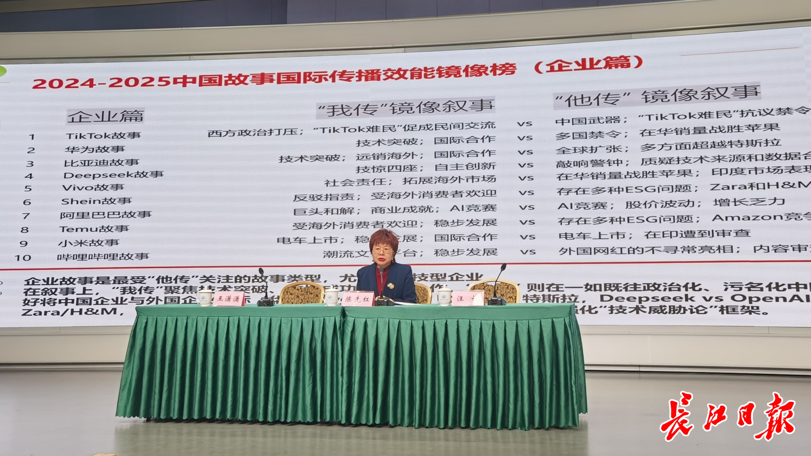 中国故事创意传播研究院院长、华科大新闻与信息传播学院教授陈先红介绍,企业榜单中十大上榜故事按行业分为媒介平台、科技制造、消费与电商三大赛道:媒介平台企业中,TikTok位居榜首,在关注度、覆盖度、参与度上均拔得头筹。科技与制造企业紧随其后,华为、比亚迪也进入前三,国际社会对中国高科技、新能源、人工智能等领域的高度关注。消费与电商企业包括vivo、希音(跨境服饰电商)、阿里巴巴、Temu(拼多多海外版)及小米等,主打消费市场,与海外受众日常生活息息相关,也榜上有名。