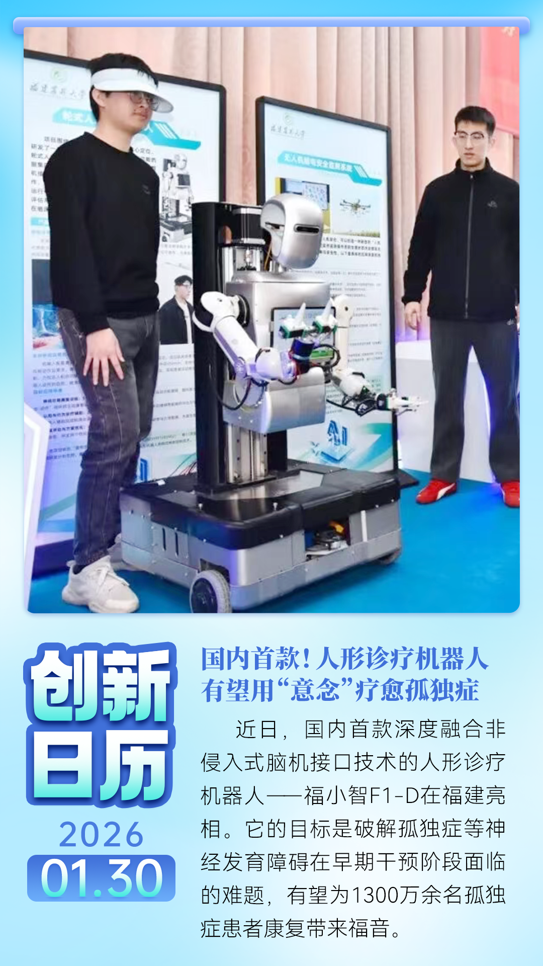 国内首款!人形诊疗机器人有望用“意念”疗愈孤独症 | 创新日历