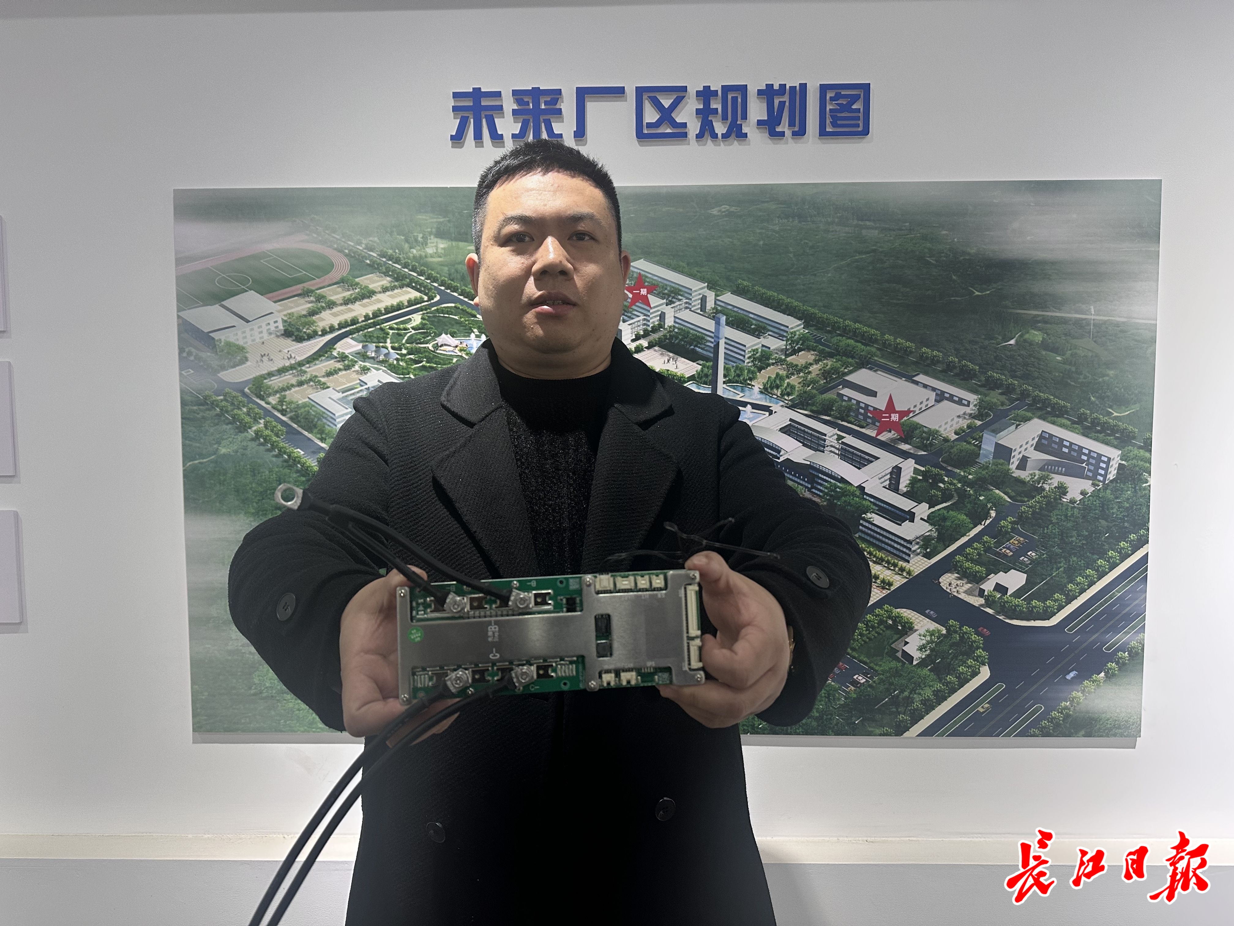 杜川展示公司自主研发的BMS电池系统。 记者张衡 摄
