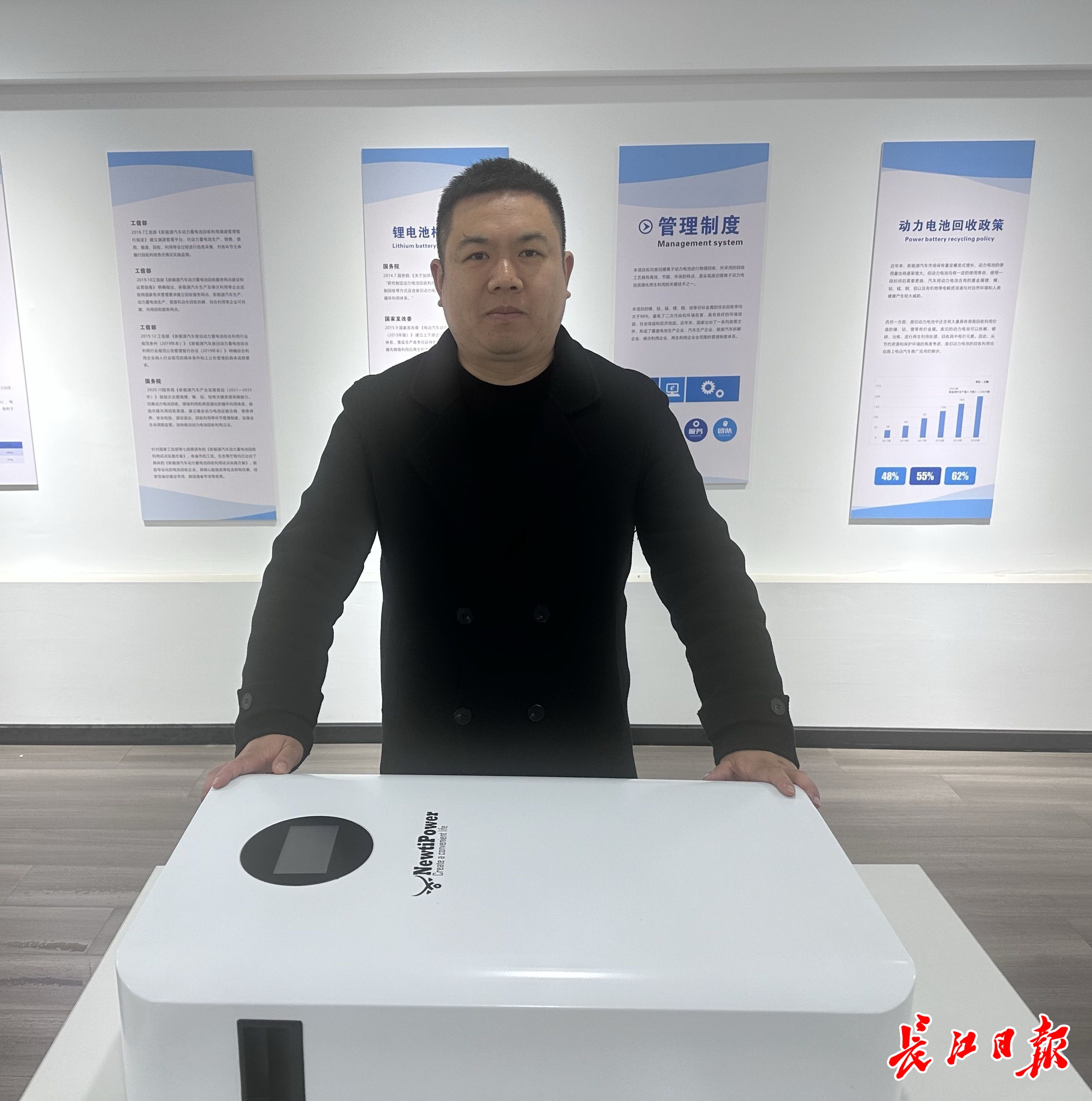 杜川展示公司生产的家用储能设备。 记者张衡 摄