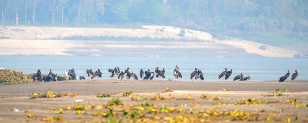 武汉天兴洲越冬的黑鹳。姚波 摄