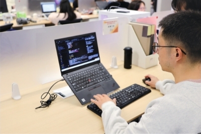 2日上午10时,卢朝阳面前的屏幕上,一行行代码如瀑布般飞速滚动。他侧过身,指着其中一片区域对记者说:“你看这个模块,上万行代码都是AI自动生成的,我只要提出需求就可以。”