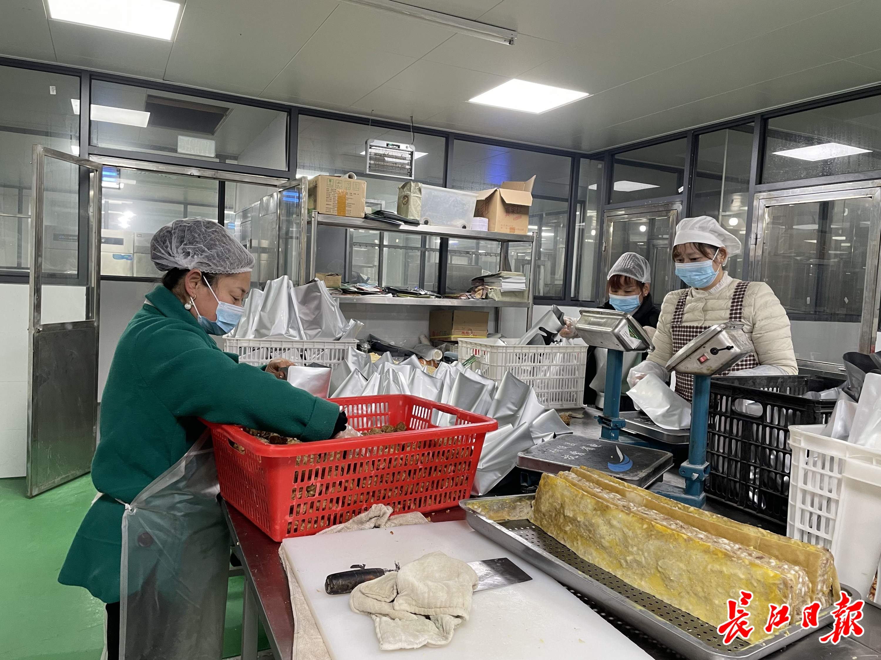 季氏黄陂三鲜食品加工厂里,工人正忙着打包。 记者郝天娇 摄