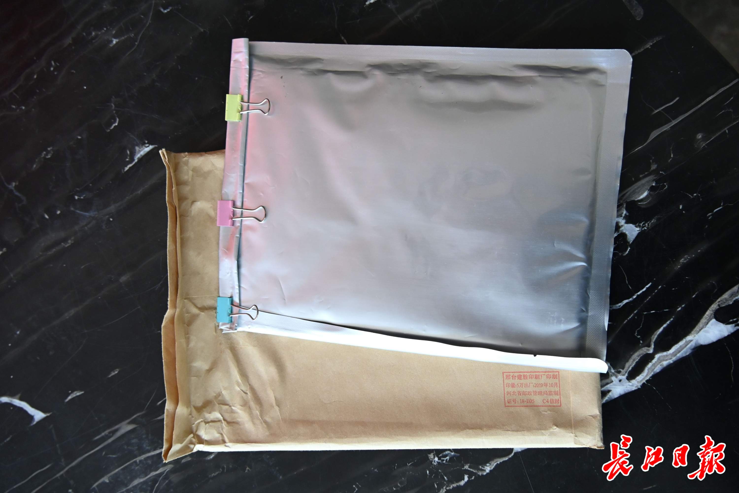 季关运将食谱保存在锡纸袋里,又用牛皮信封装好。 记者郝天娇 摄