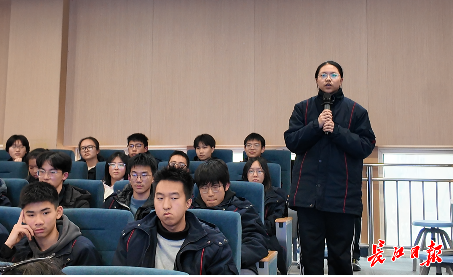 武汉一中学生向人大代表们提问。记者刘嘉 摄