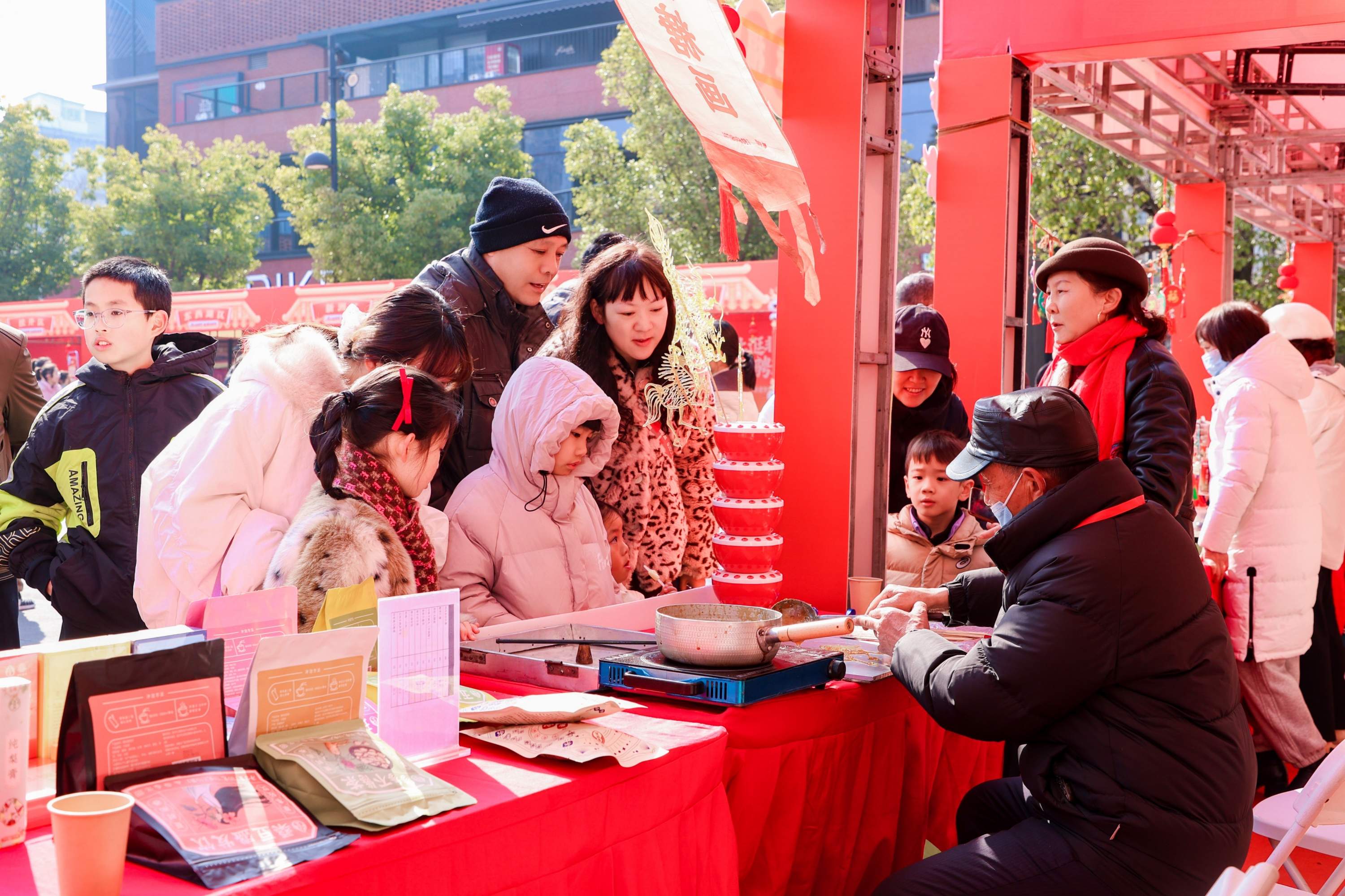 第38届五芳斋汤圆节、新荣天街“天街庙会”灯市长廊、咸安坊非遗大集、吉庆街商圈打年糕、画糖画和保元里《保元风云》新年场等,持续送上文化新春礼。