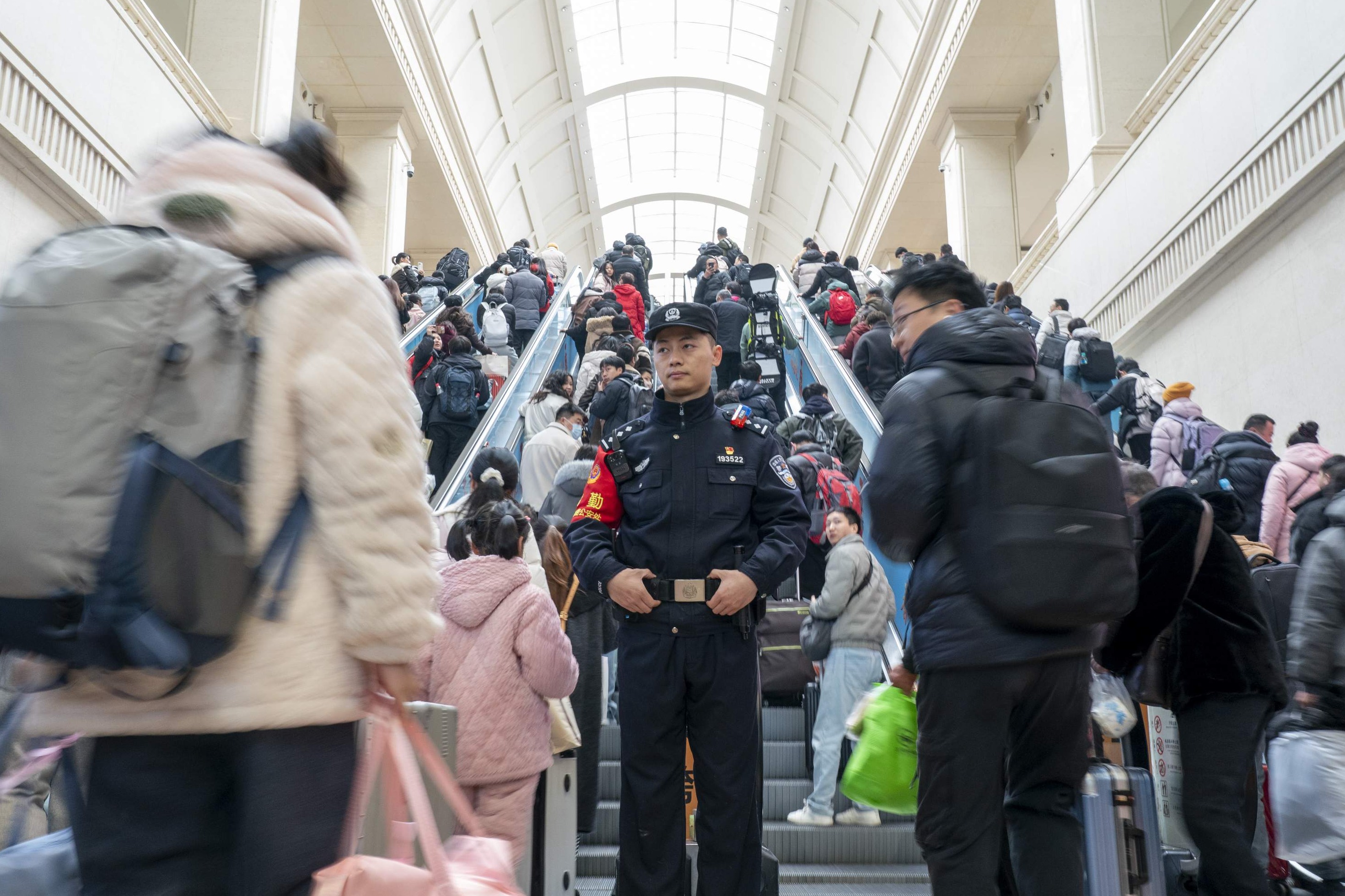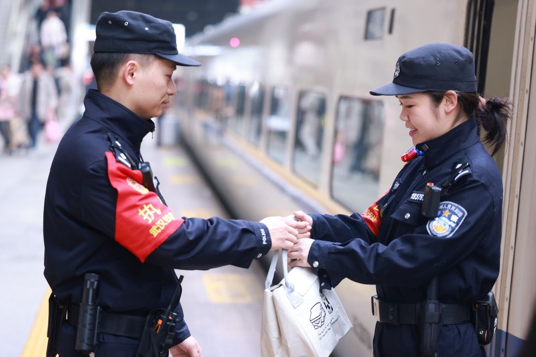 他俩都是武汉铁路公安局武汉公安处的民警。李以诺是汉口站派出所三级警长,今年33岁,李赫男是江城女子乘警大队四级警长,今年30岁。2026年春运是他们结婚以来共同度过的第三个春运。虽然两人都在铁路公安系统工作,但两人工作岗位不同,且需倒班值守,平日里聚少离多,春运开始后见面就更加不易。