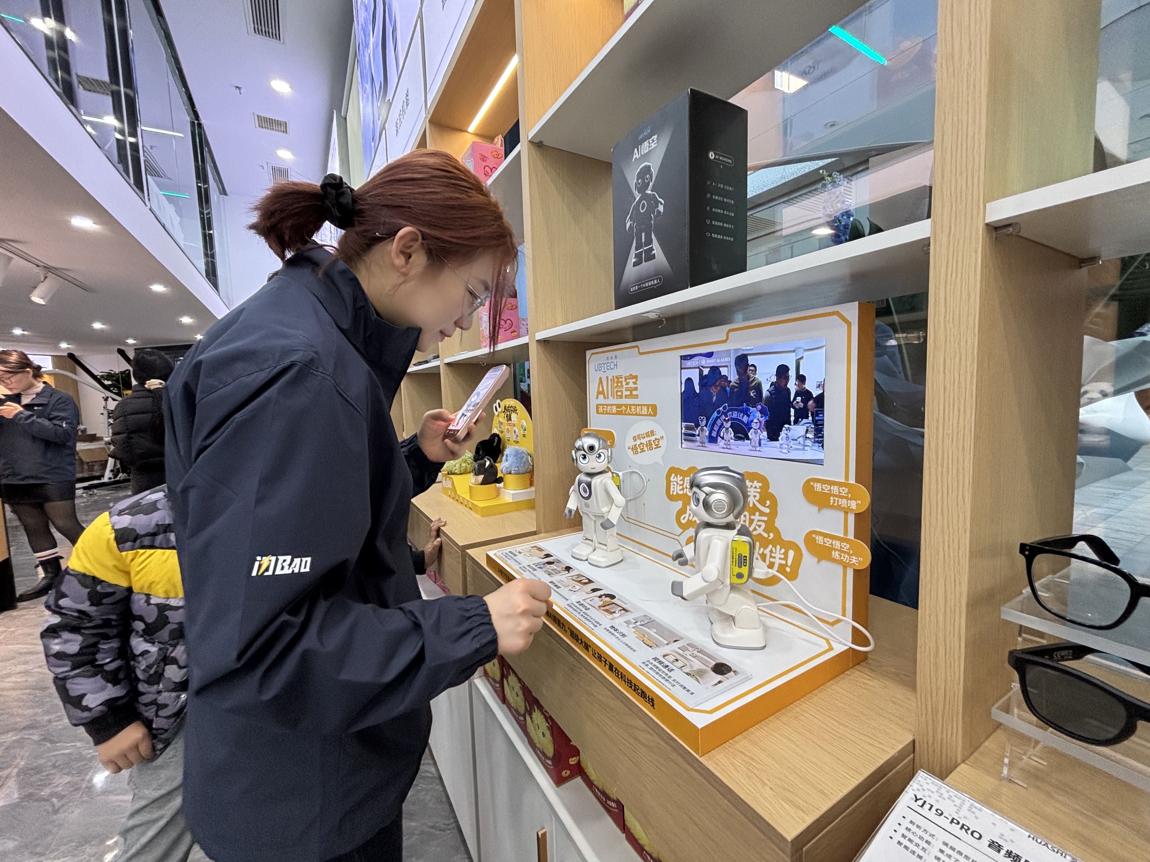 门店内摆放着优必选、宇树、科大讯飞等热门品牌的人工智能产品。栾嘉雯 摄