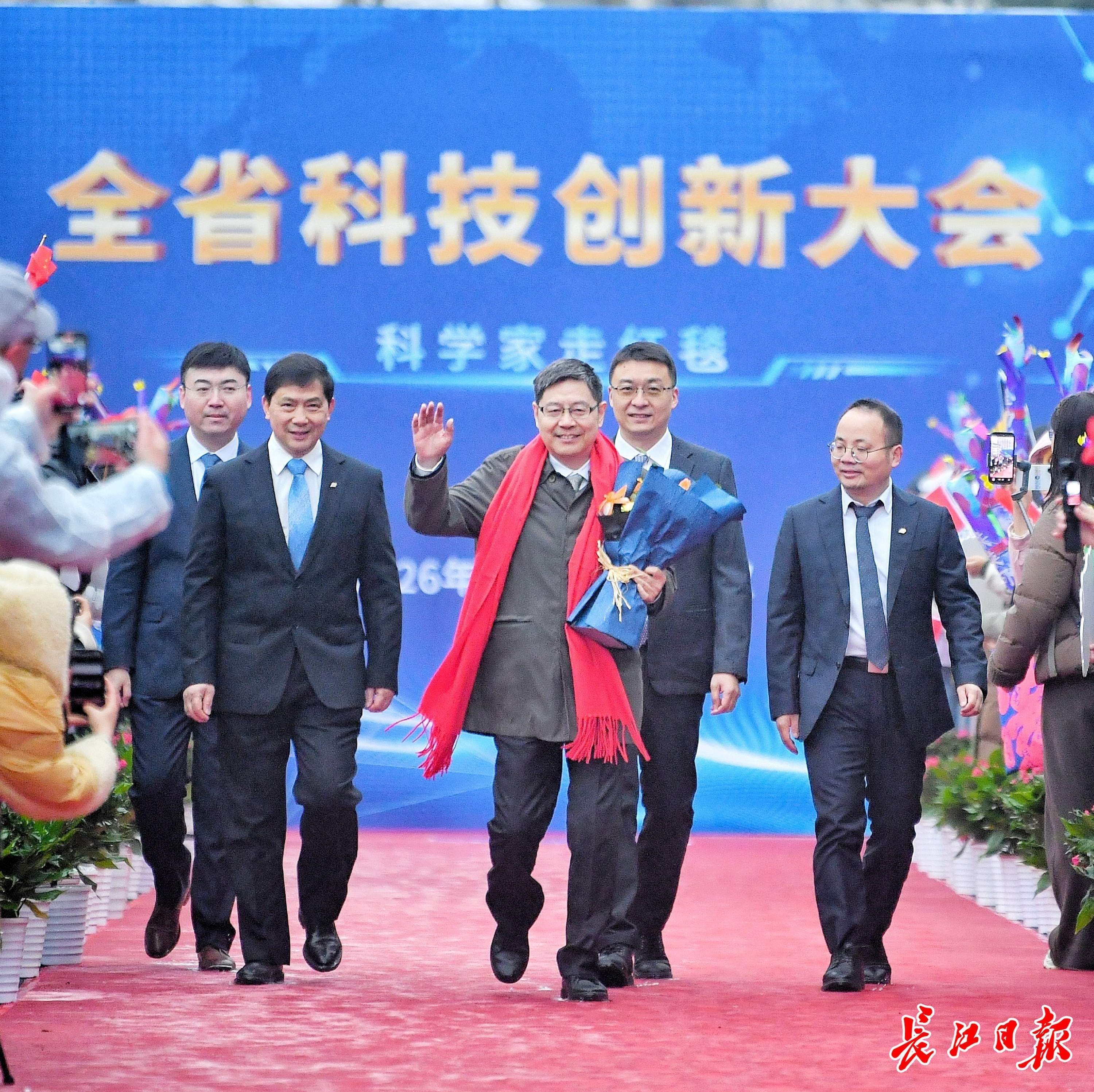 华中科技大学丁烈云院士(持花束者)。记者 胡冬冬 摄