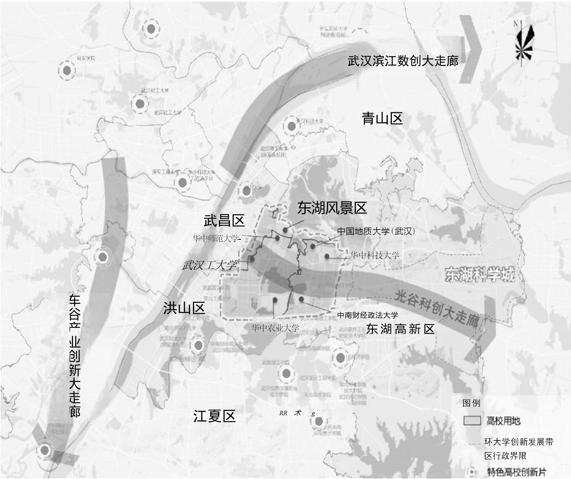 武汉市环大学创新发展带空间布局图。
