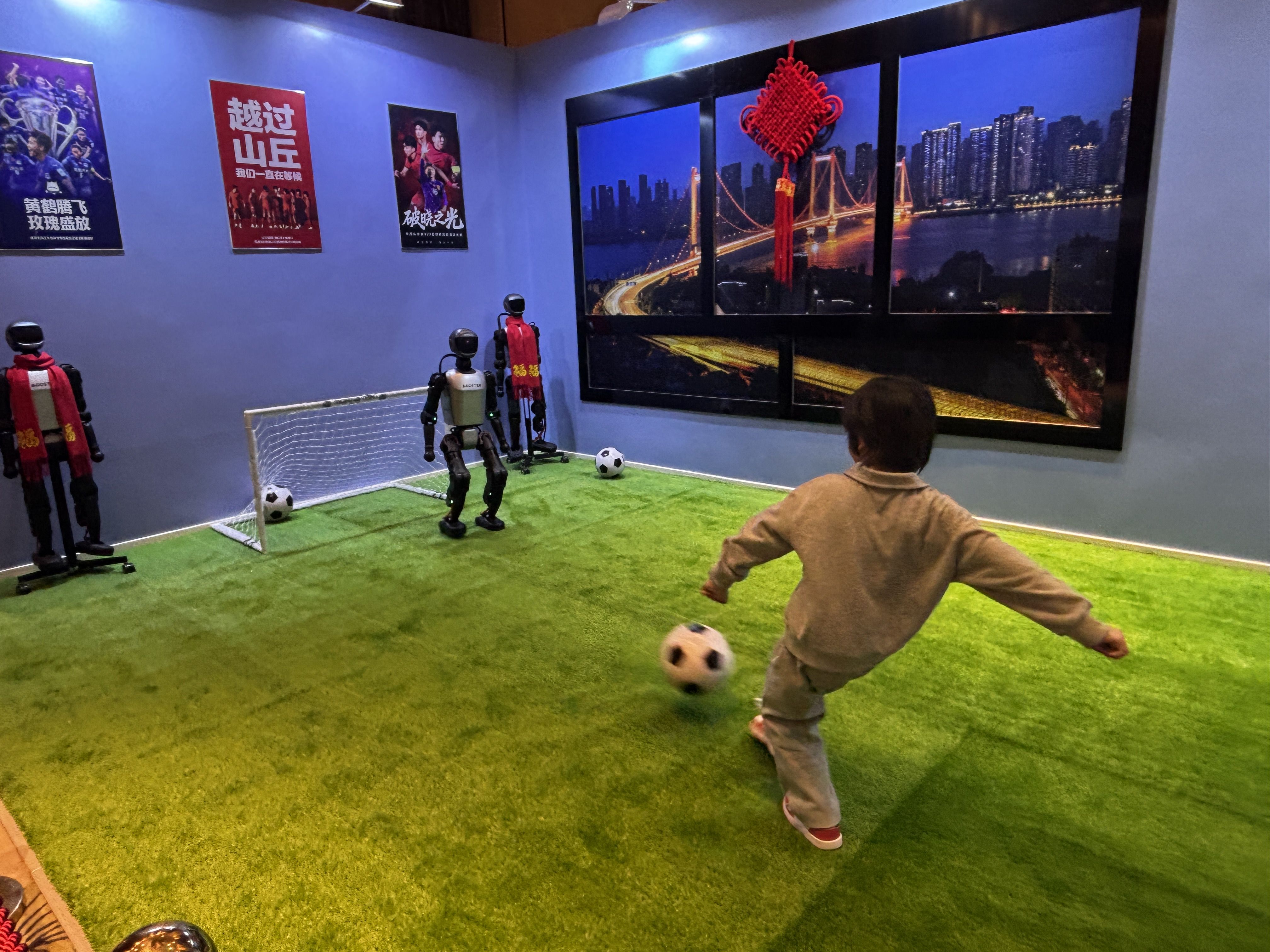 光谷东智的“书法家”光子H1人形机器人挥毫泼墨,潇洒写“福”;格兰若“大壮”化身暖男,稳稳递上“五谷丰登”贺礼;光谷盛创NAO机器人变身国学老师,带娃诵读《木兰辞》;武汉加速迭代科技的Booster T1足球机器人则与小朋友现场激战,上演精彩“人机足球赛”……各款汉产机器人纷纷亮出绝活,魅力四射。