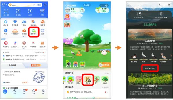 同时,市民还可通过蚂蚁森林平台,在线巡护“沉湖保护地”,以数字化方式参与武汉国际重要湿地的守护。
