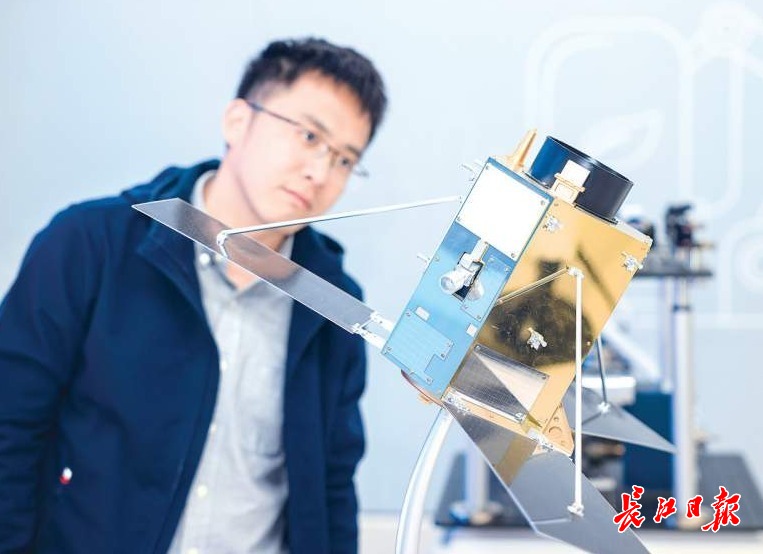 珞珈三号01星在武创院展厅内展示。 记者胡冬冬 摄(资料照片)