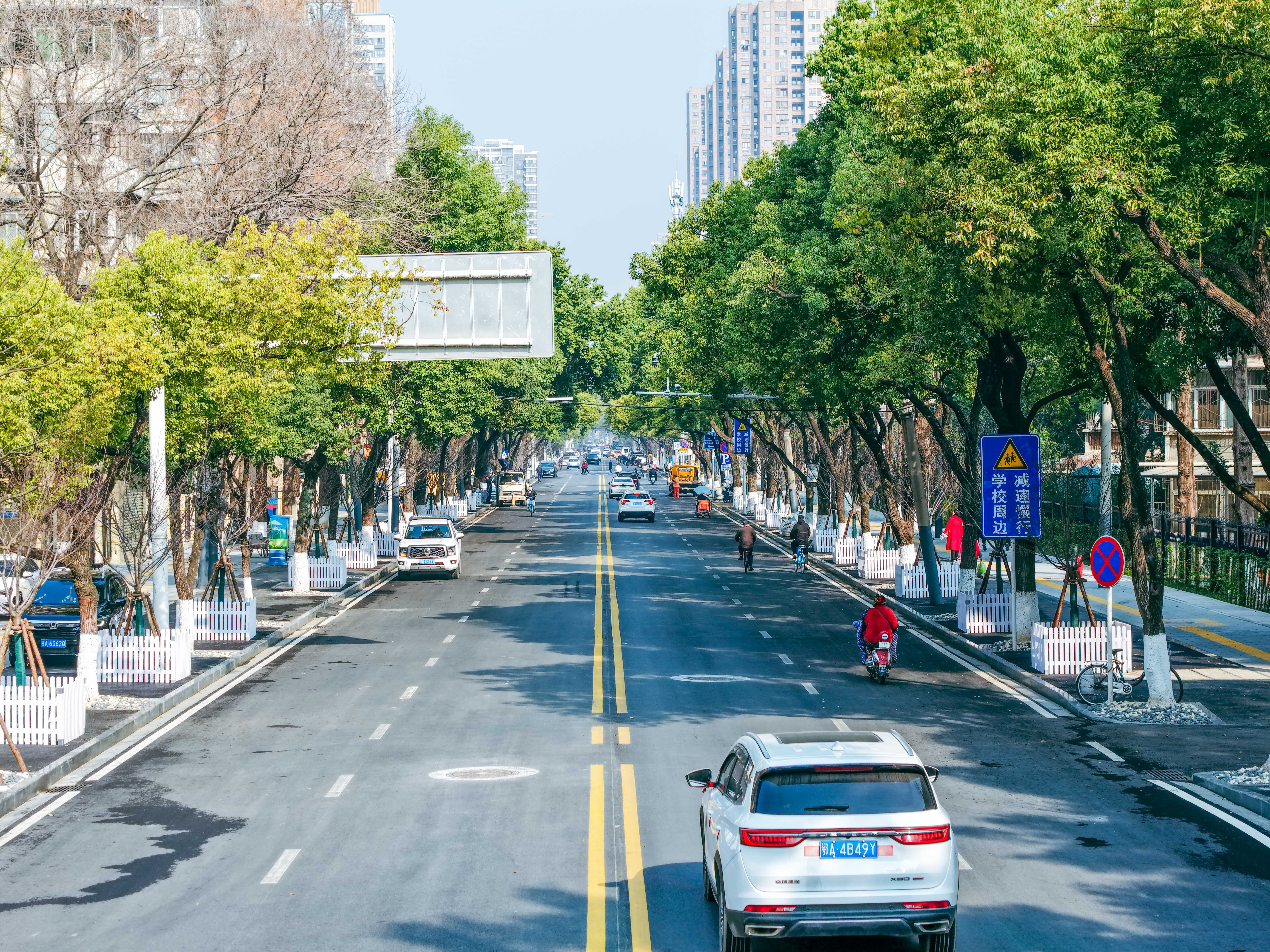 建设三路提升后,道路平坦开阔,景致焕然一新。记者陶常宁 摄