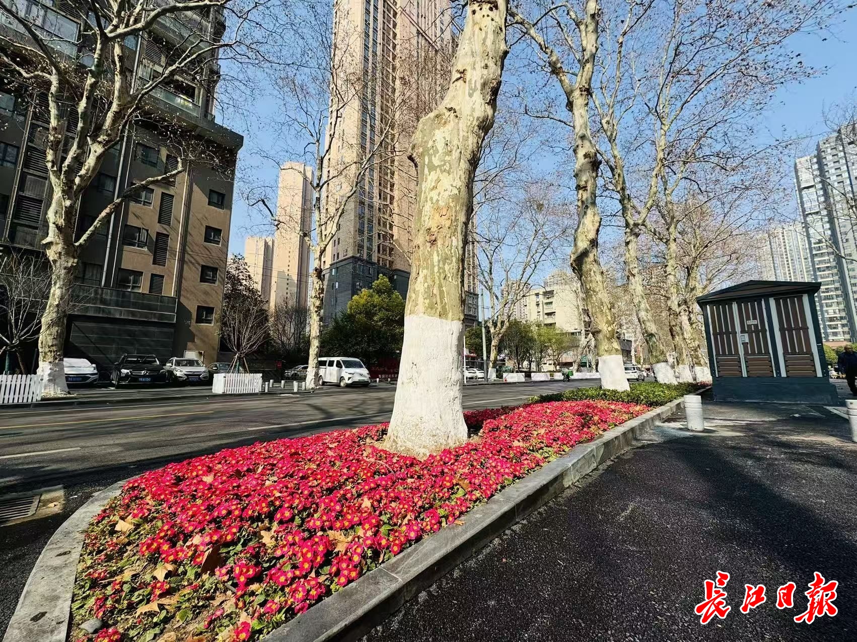 3月12日上午,阳光明媚,长江日报记者按照汉马赛事路线,从友谊大道出发,沿建设三路经过和平大道、临江大道,行至终点青山江滩。放眼望去,整条道路变得宽敞整洁、秩序井然,每个路口就像一座小花园,两侧补种了樱花、海棠、蔷薇等春季开花植物,景观层次更加丰富。