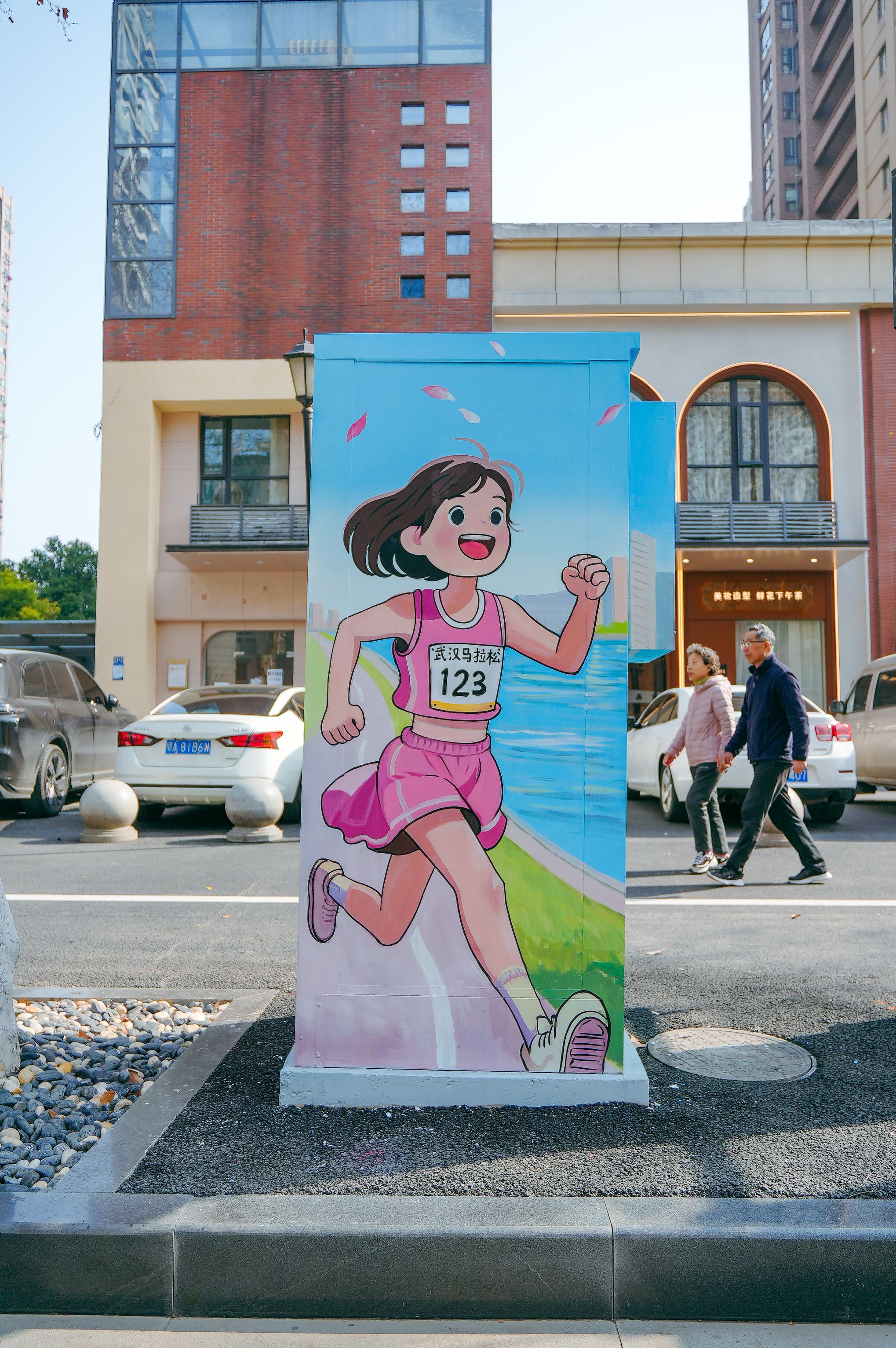 建设三路光交箱柜穿上了汉马彩绘“外衣”。通讯员供图