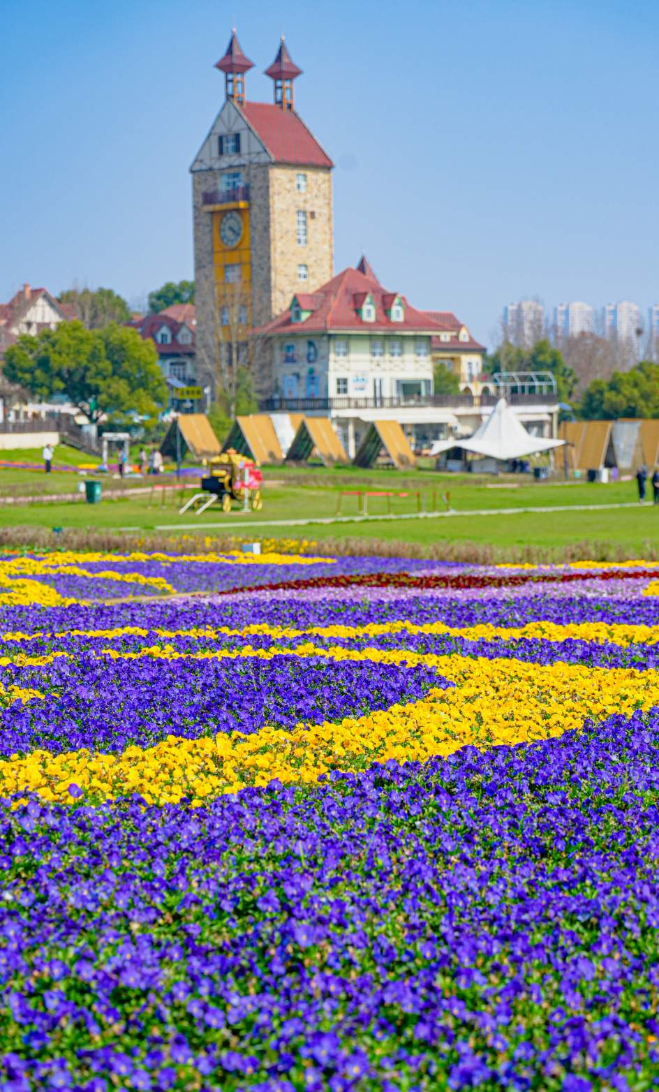 东湖万国公园的风车花海、武昌江滩的“灯塔花海”、蔡甸消泗的最美花海,共同织就了江城春日多彩的浪漫锦缎。
