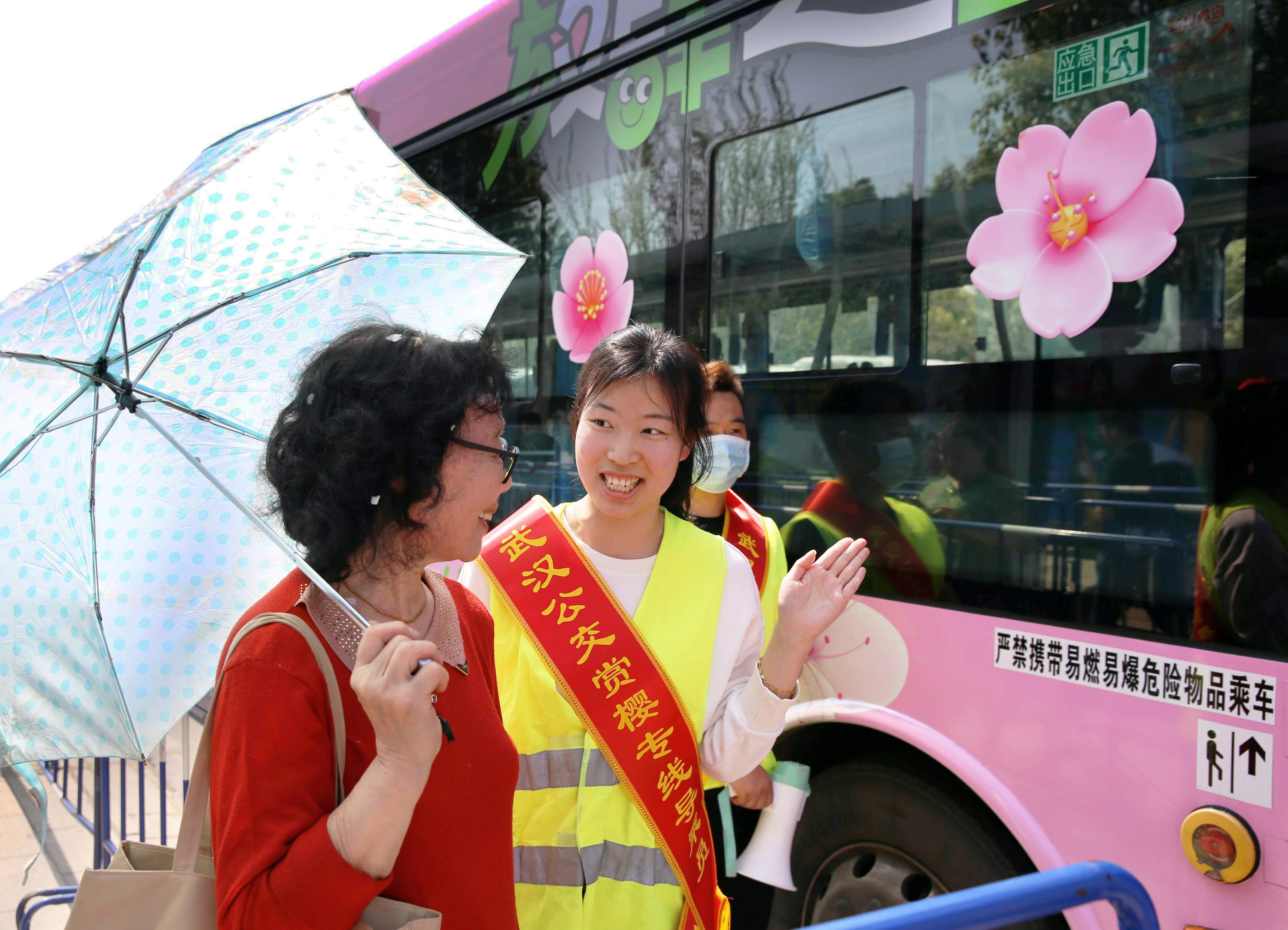 今年赏樱季,武汉公交推出了“常规公交+赏樱专线+定制包车”的组合服务。通讯员龚姣 供图
