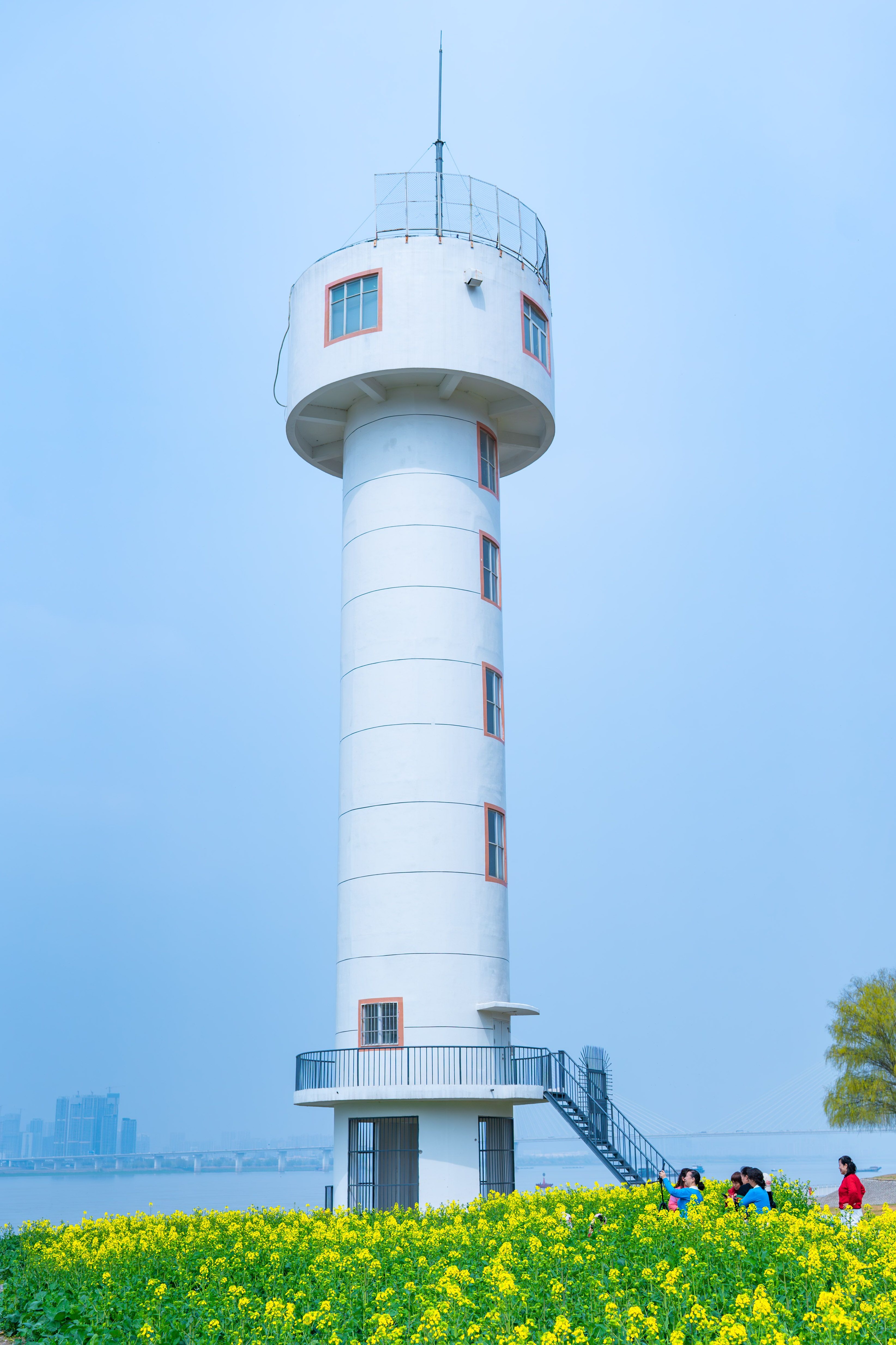 武昌江滩,小白塔、油菜花与“孤独的树”。 通讯员吴秀芬 摄