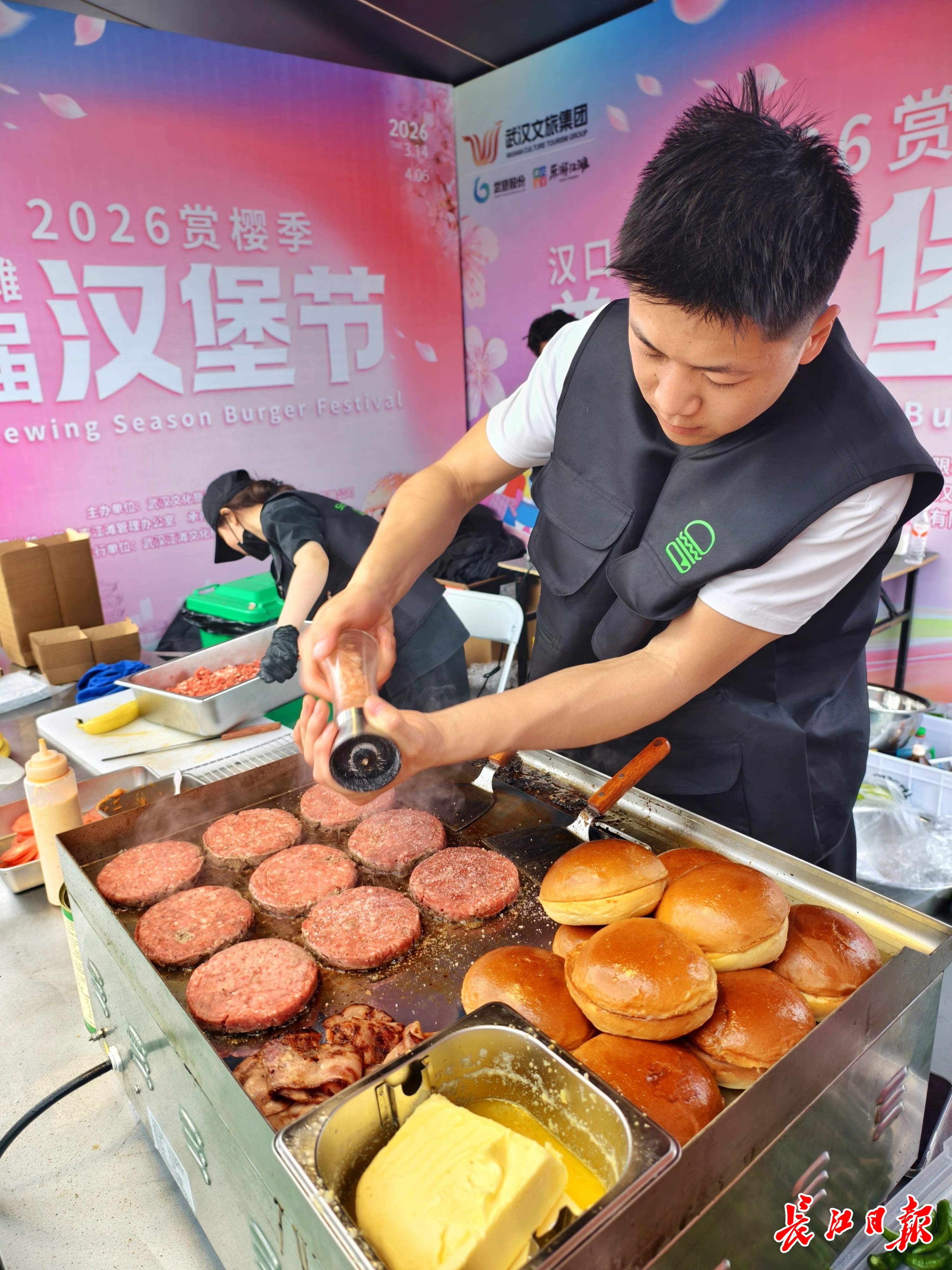 3月14日上午11时,在汉口江滩三阳广场,2026赏樱季·汉口江滩首届汉堡节正式开摊。以“赏樱+汉堡+江景”为核心创意,本次汉堡节巧妙融合本土美食、江滩风光与春日赏樱景致,市民游客一边赏樱看江,一边大快朵颐,沉浸式解锁江城春日的浪漫与烟火。