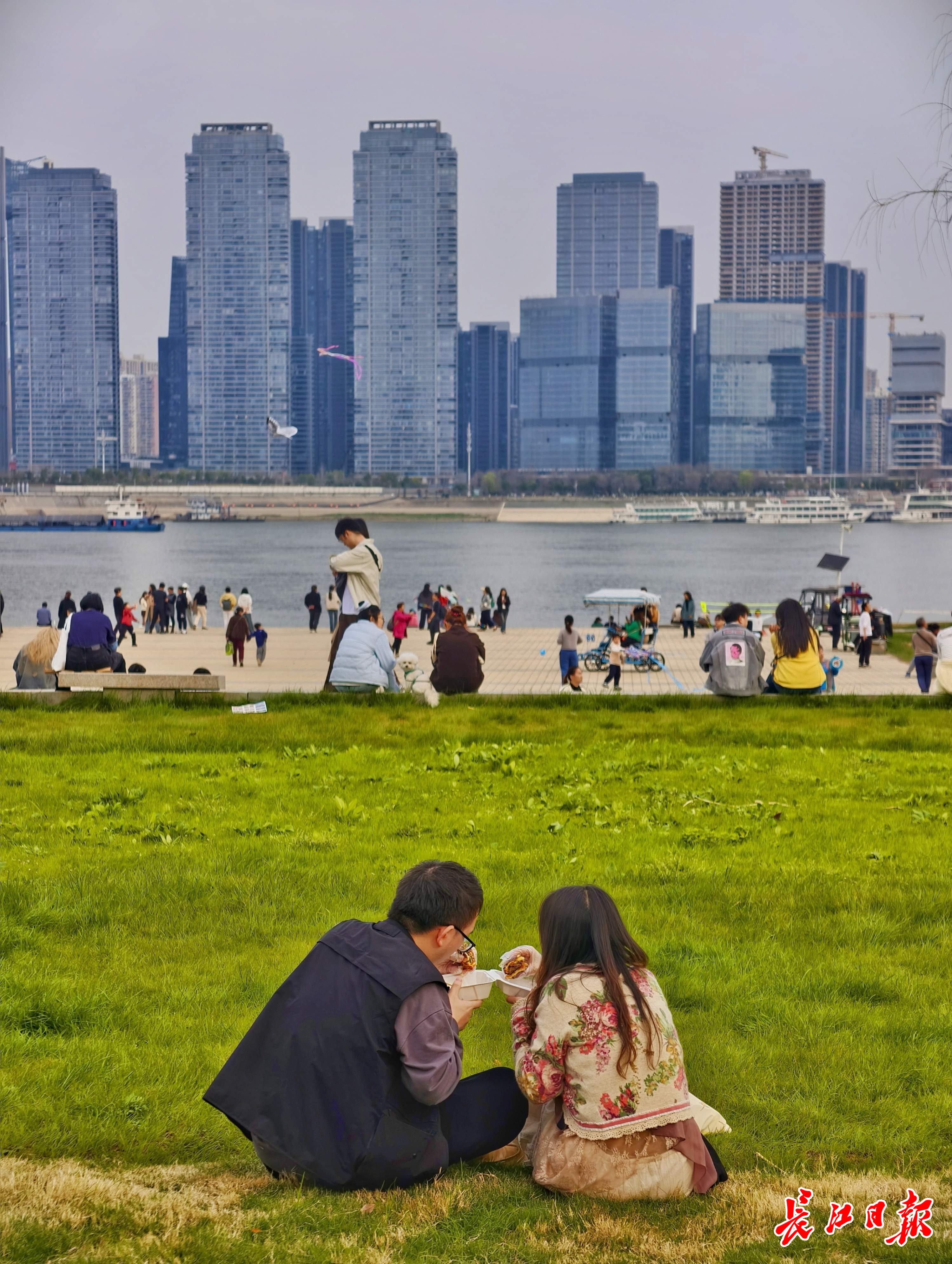 美食、落樱与江滩,让人们沉浸在春日的美丽景致。