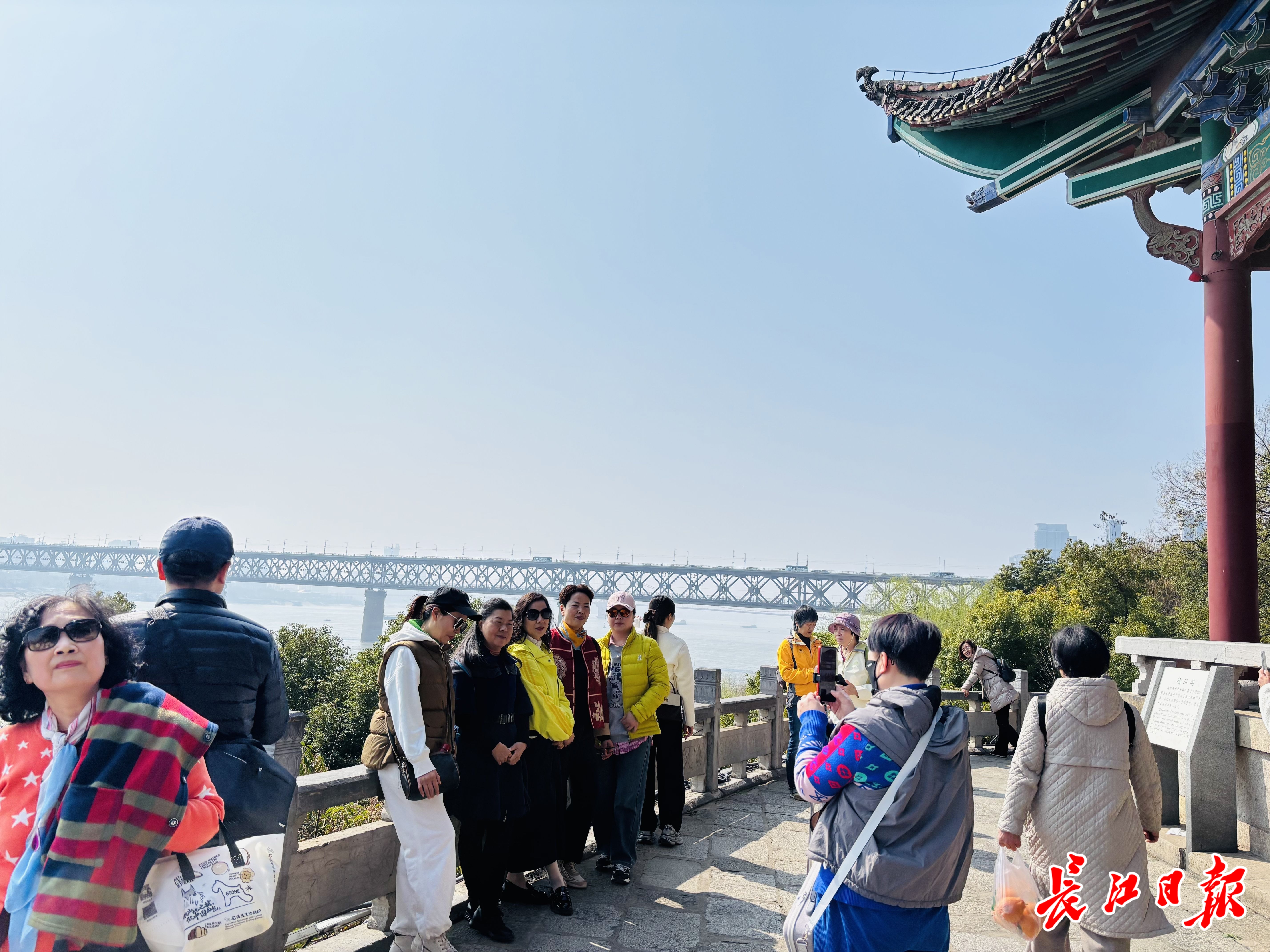 走上长江大桥,江风浩荡。3月13日上午,记者实测,从汉阳桥头漫步至武昌桥头,不紧不慢大约35分钟。桥的那头,直通黄鹤楼西门。千古名楼内,工作人员一袭古装,仿佛从画中走来。入夜后,这里的“夜上黄鹤楼”光影秀将落下唯美的樱花雨。户部巷、斗级营升腾着市井的烟火气,中华路城市阳台和武昌江滩则是另一番开阔景象。