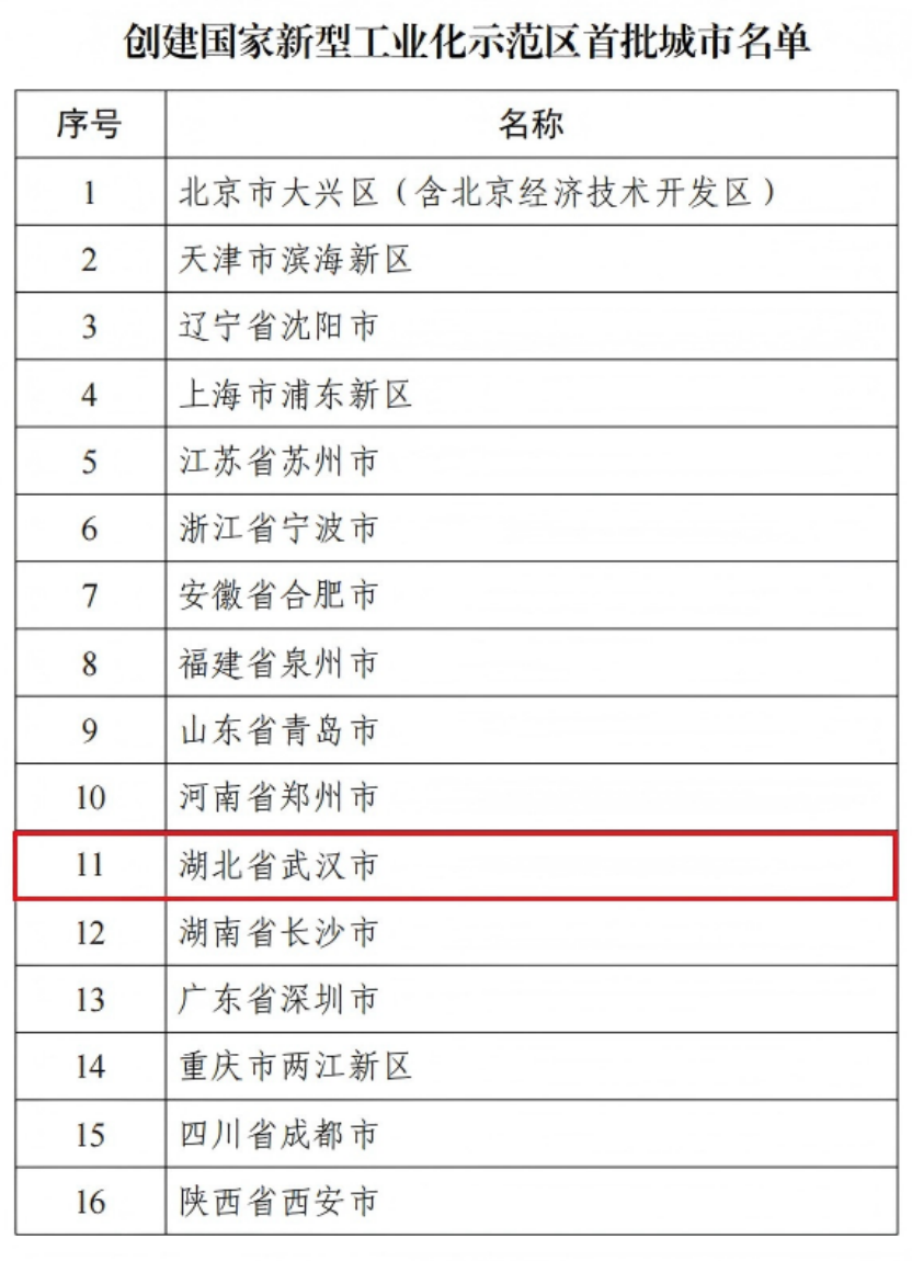 长江日报大武汉客户端3月17日讯 3月16日,工业和信息化部公布全国首批16个创建国家新型工业化示范区城市名单,武汉成功入选。长期以来,武汉在培育壮大先进制造业集群,推动制造业智能化、绿色化、融合化发展方面持续探索,此次入选,将肩负起为全国新型工业化探路先行的重任。