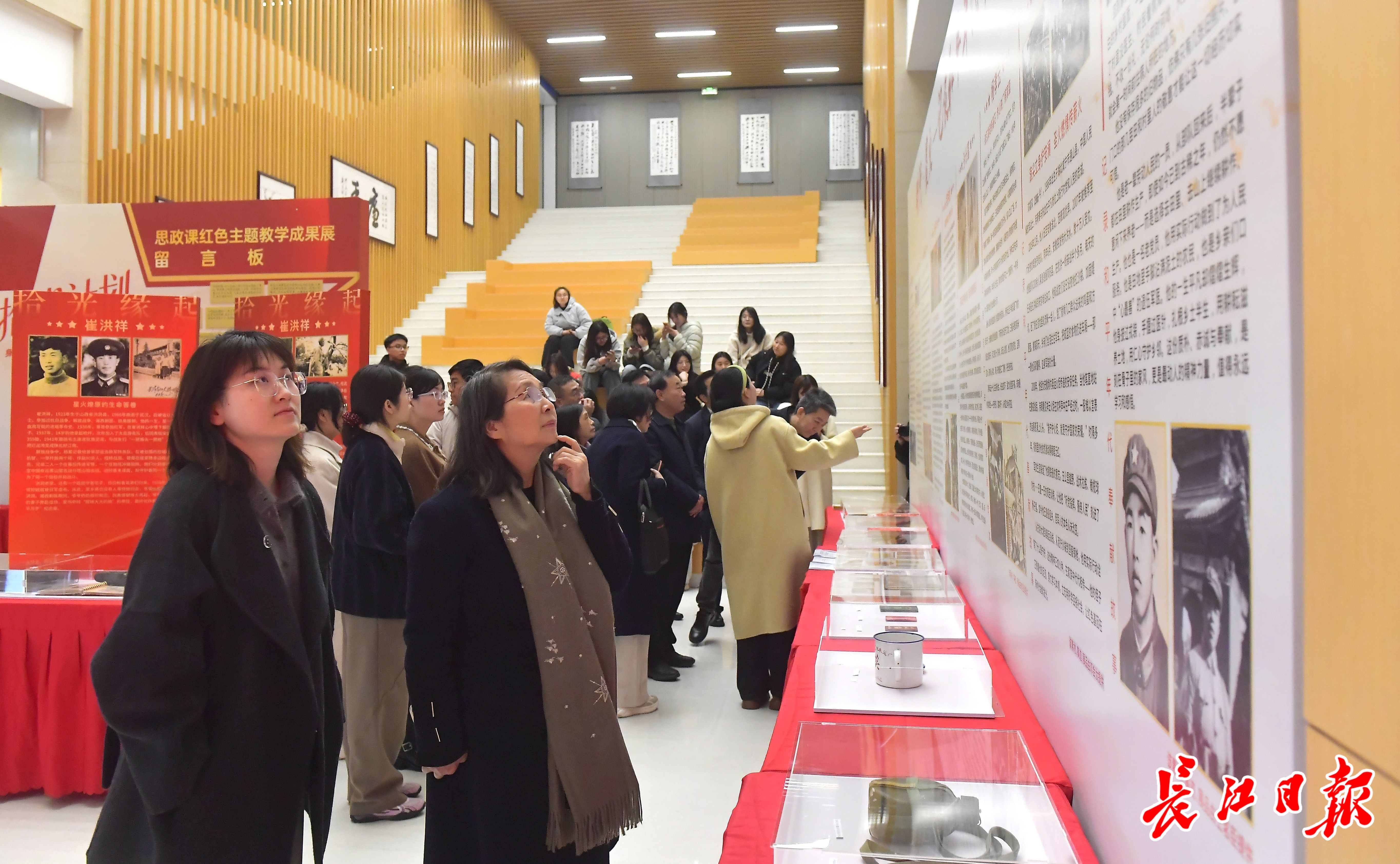 师生们观看“拾光计划·身边的红色故事——思政课红色主题教学成果展”。记者刘斌 摄