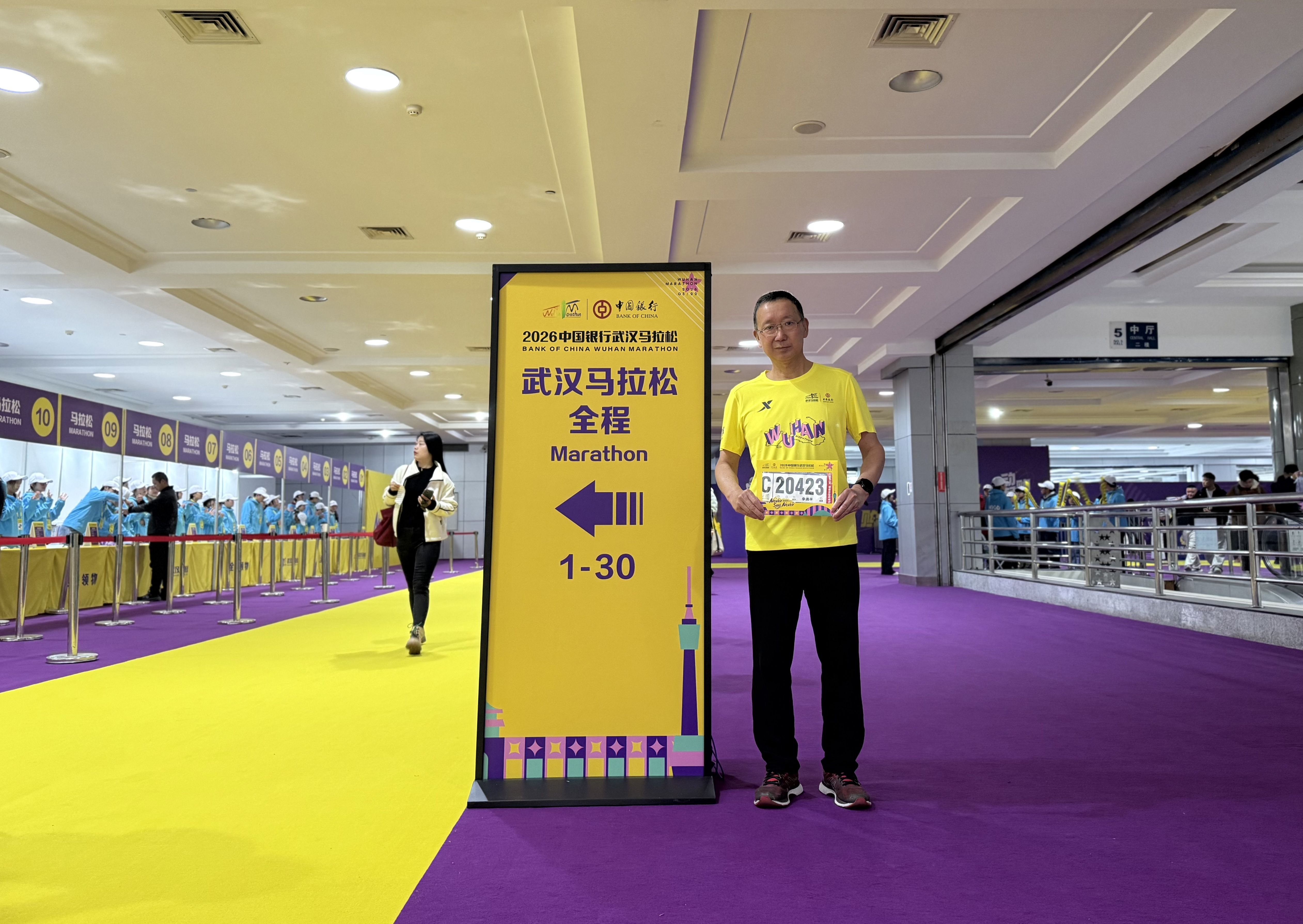 3月19日上午,记者在武汉国际会展中心见到了前来领取参赛物资的李晓平,虽然发根已全白,但一聊起跑步,他就像年轻了40岁。