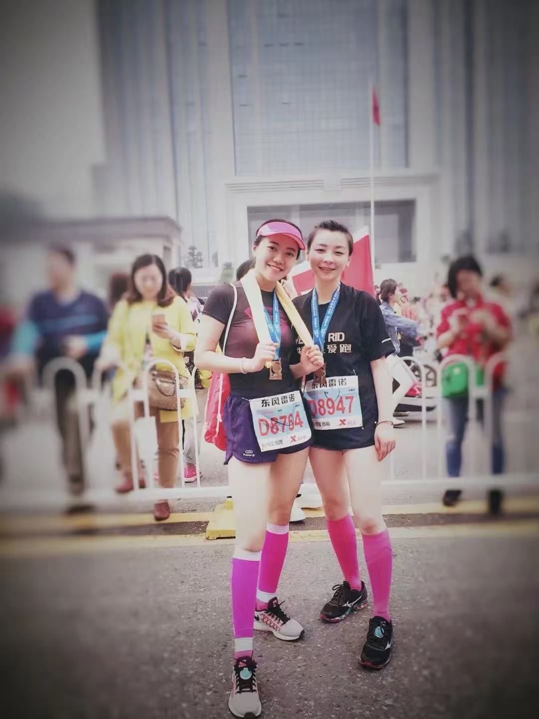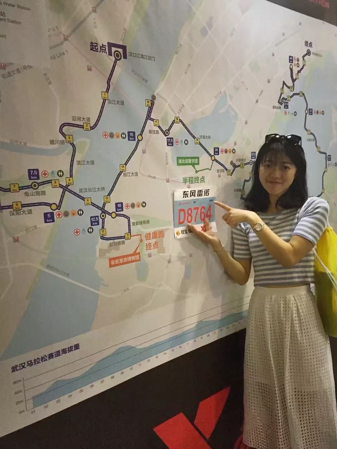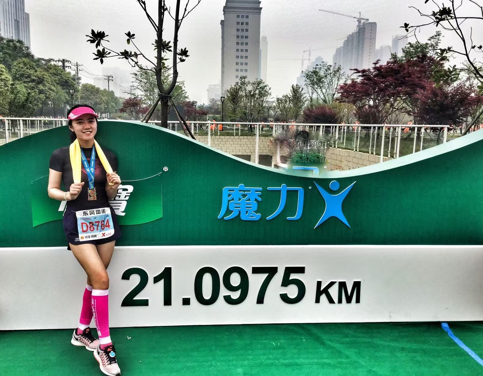 2016年完赛后,舒婷与半马的公里数留下合影。