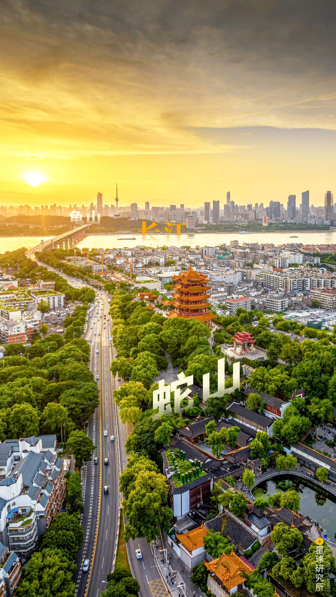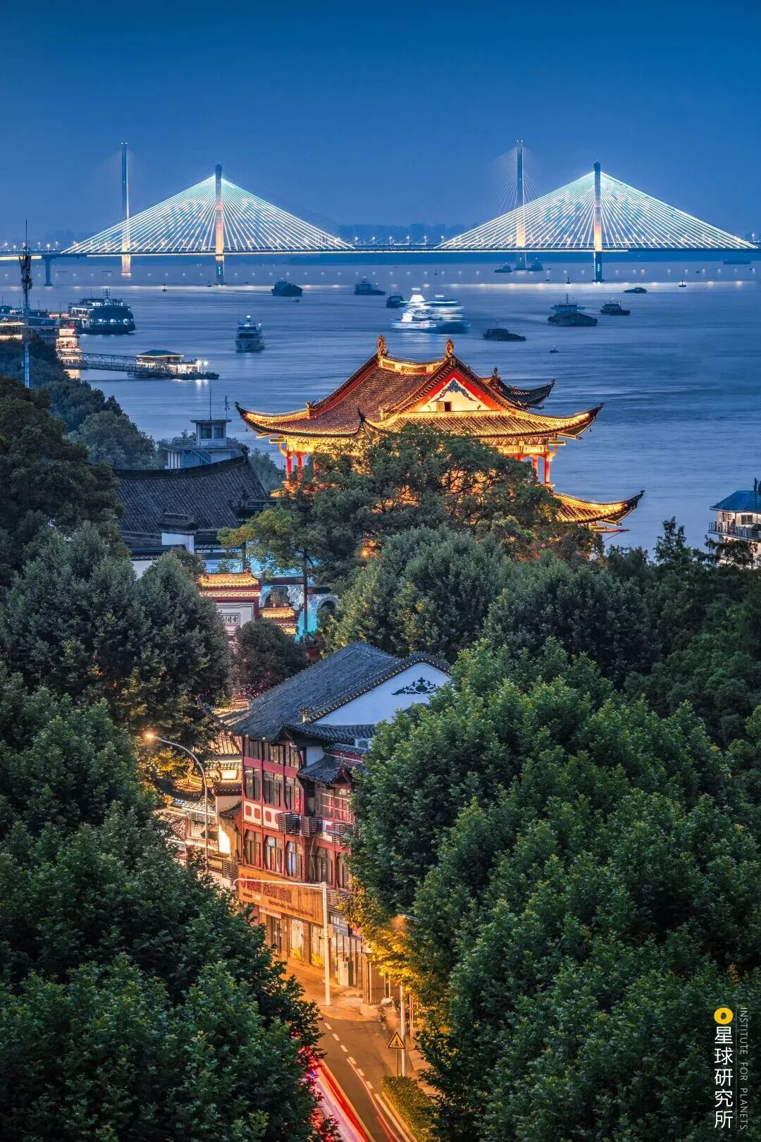 上文诗词出自毛泽东《菩萨蛮·黄鹤楼》,龟山与蛇山隔长江对望