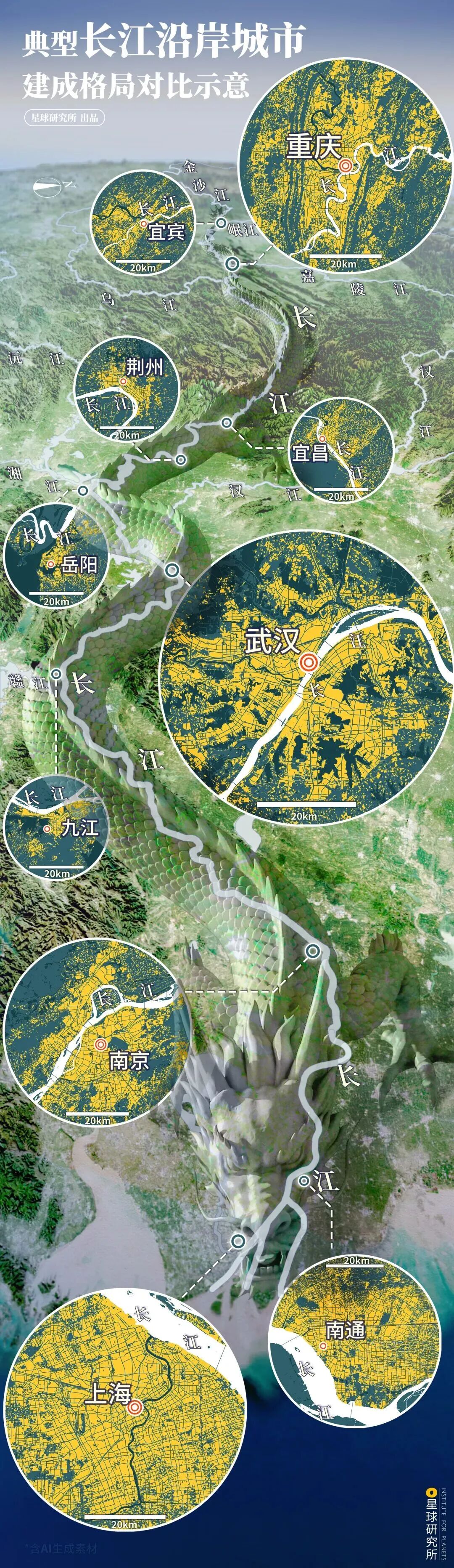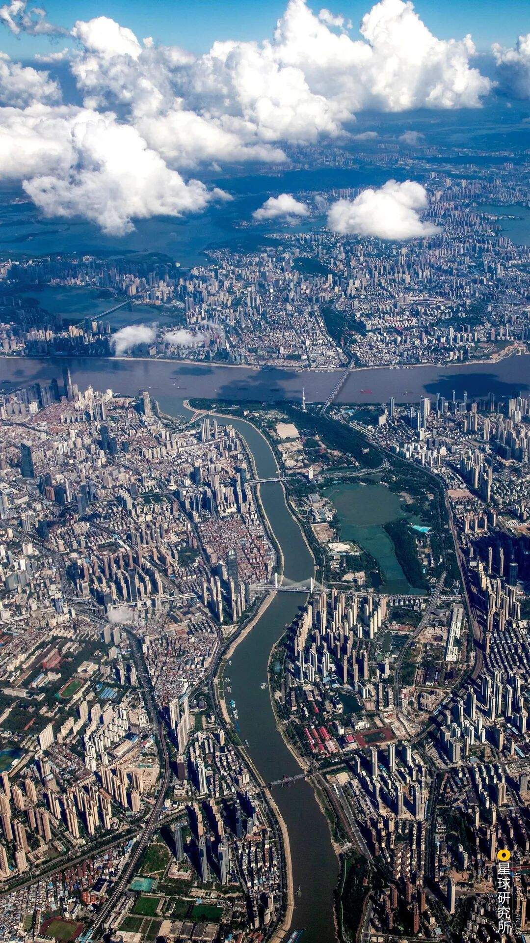 请横屏观看,武汉两江四岸城市格局,地名采用习称的三镇进行标注