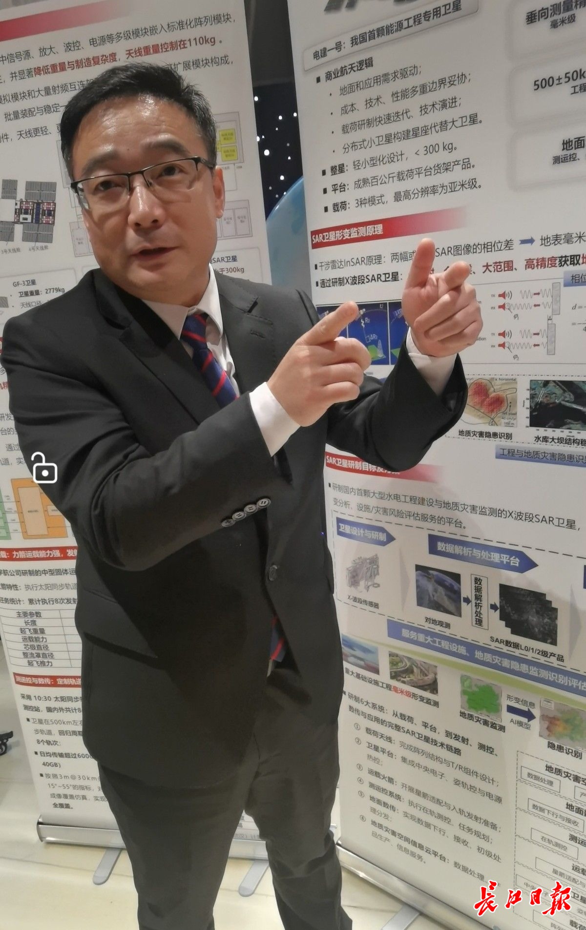 “电建一号”卫星模型。记者杨佳峰 摄