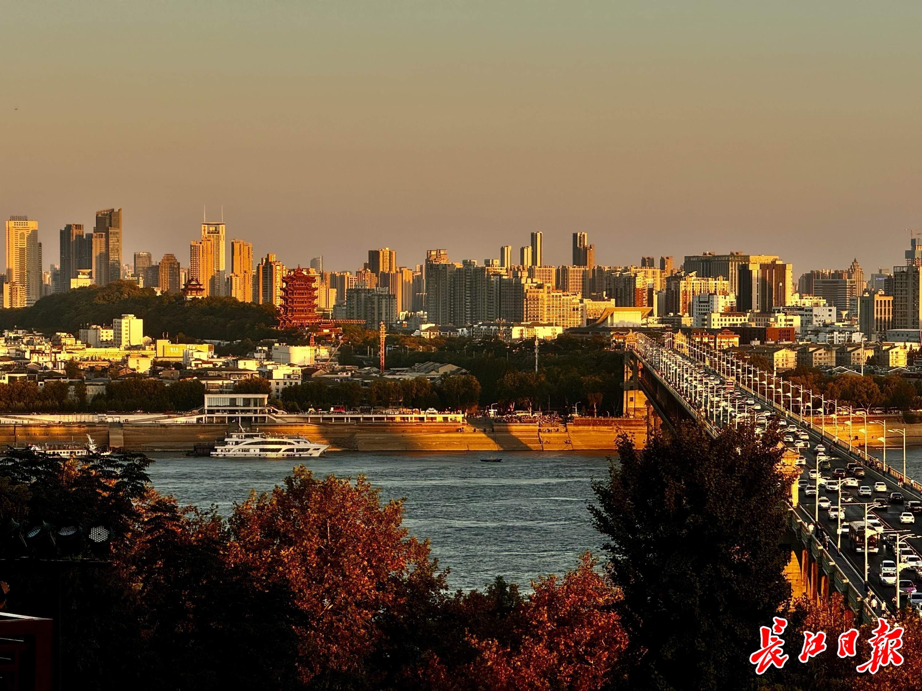 龟山蝴蝶泉观景平台上,眺望长江大桥和黄鹤楼。记者黄丽娟 摄