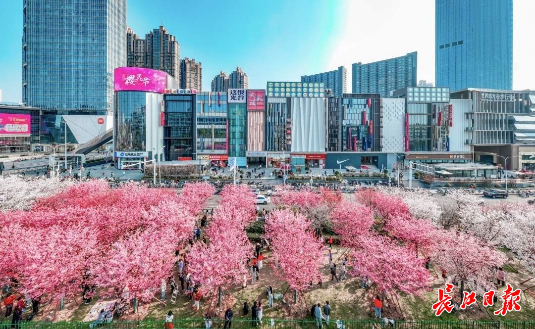 光谷商圈,被樱花包围。记者陈亮 摄