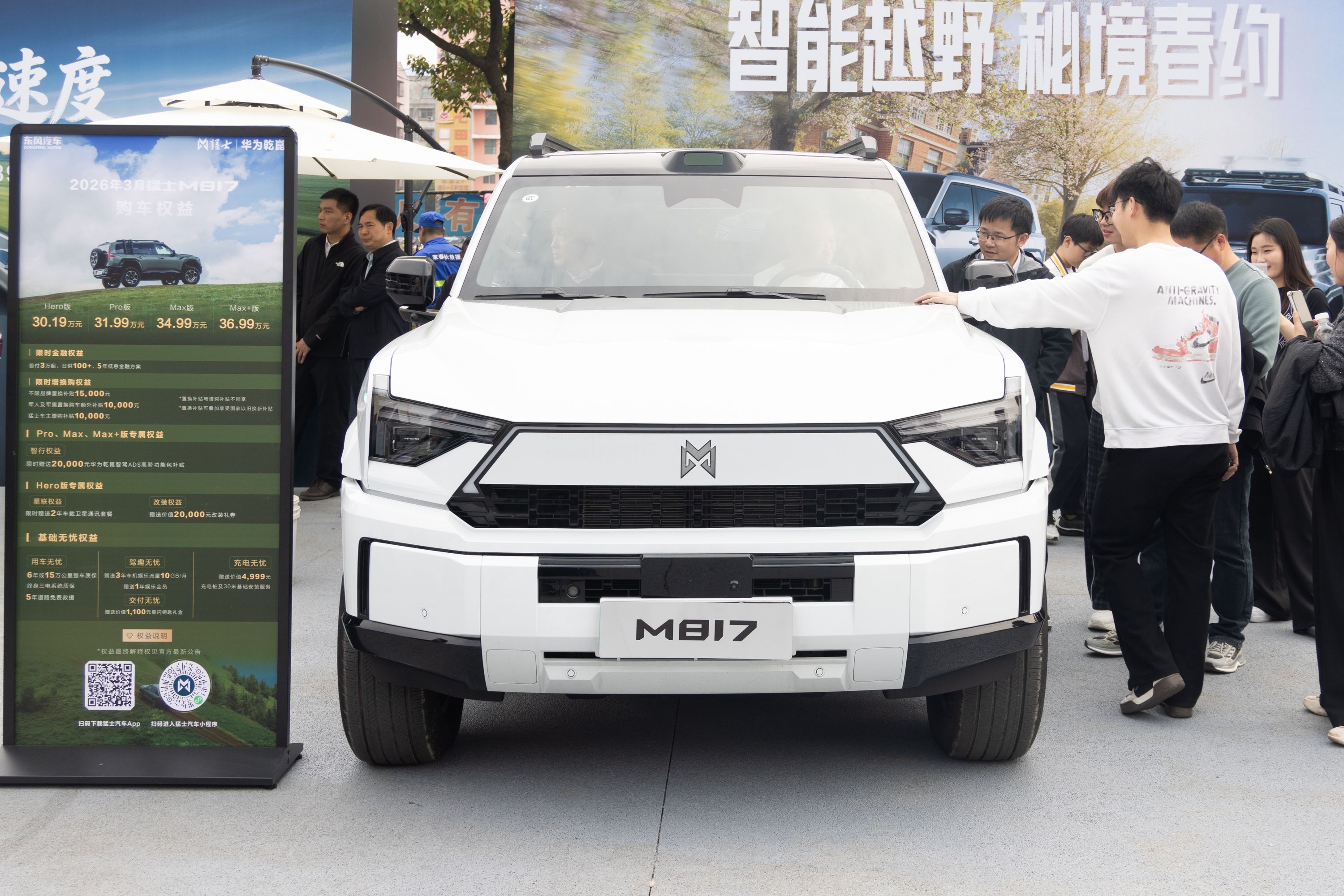 不少市民在一辆猛士M817车前围观咨询,频频称赞这辆车太酷了。一旁的工作人员介绍该车可适应戈壁、高原、雪地等复杂地形,并留下想体验试驾市民的联系方式。汉川市民刘女士告诉记者,东风奕派eπ007+很适合日常使用,还有消费券优惠,准备选择合适配置的车型。