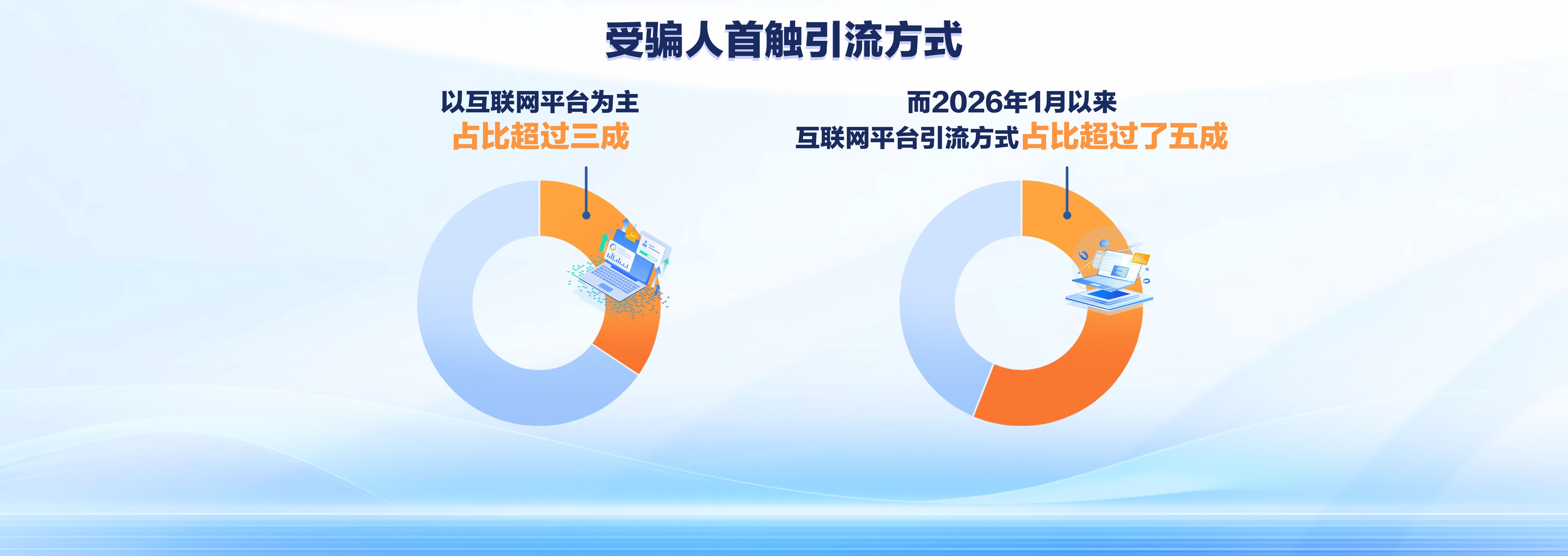 湖北警方统计发现,今年1月以来全省电诈案件中互联网平台引流方式占比已超过五成,其占比还在提高。