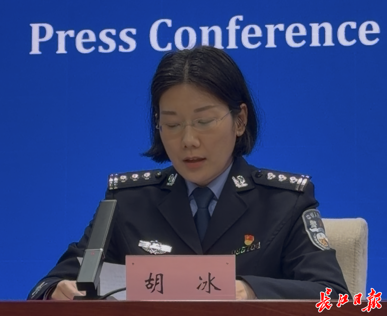 图为市公安局东西湖区分局刑事侦查大队一中队政治指导员胡冰在湖北省公安厅新闻发布会上发言。记者夏奕 摄