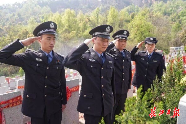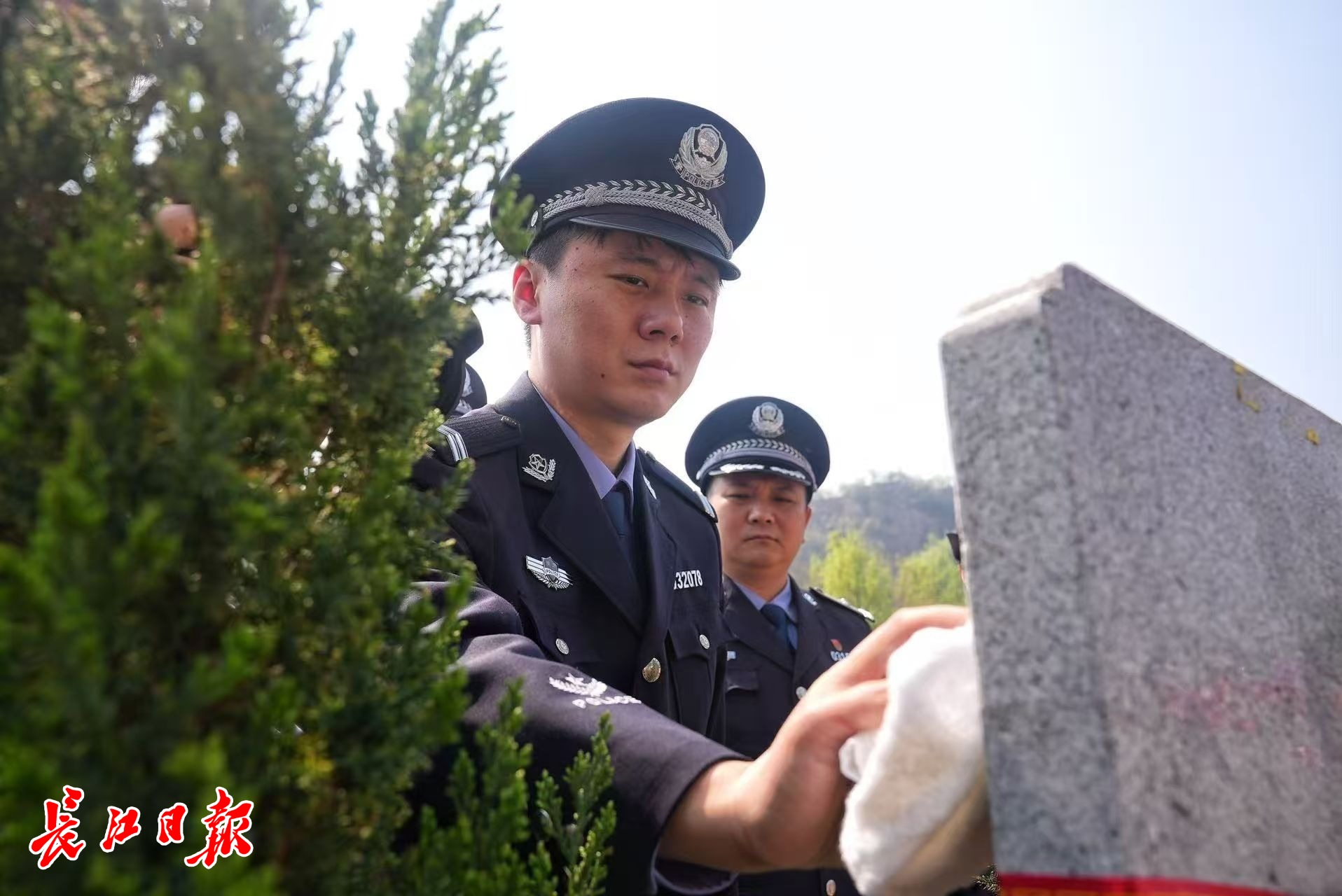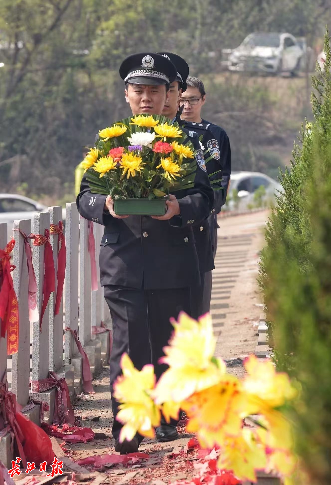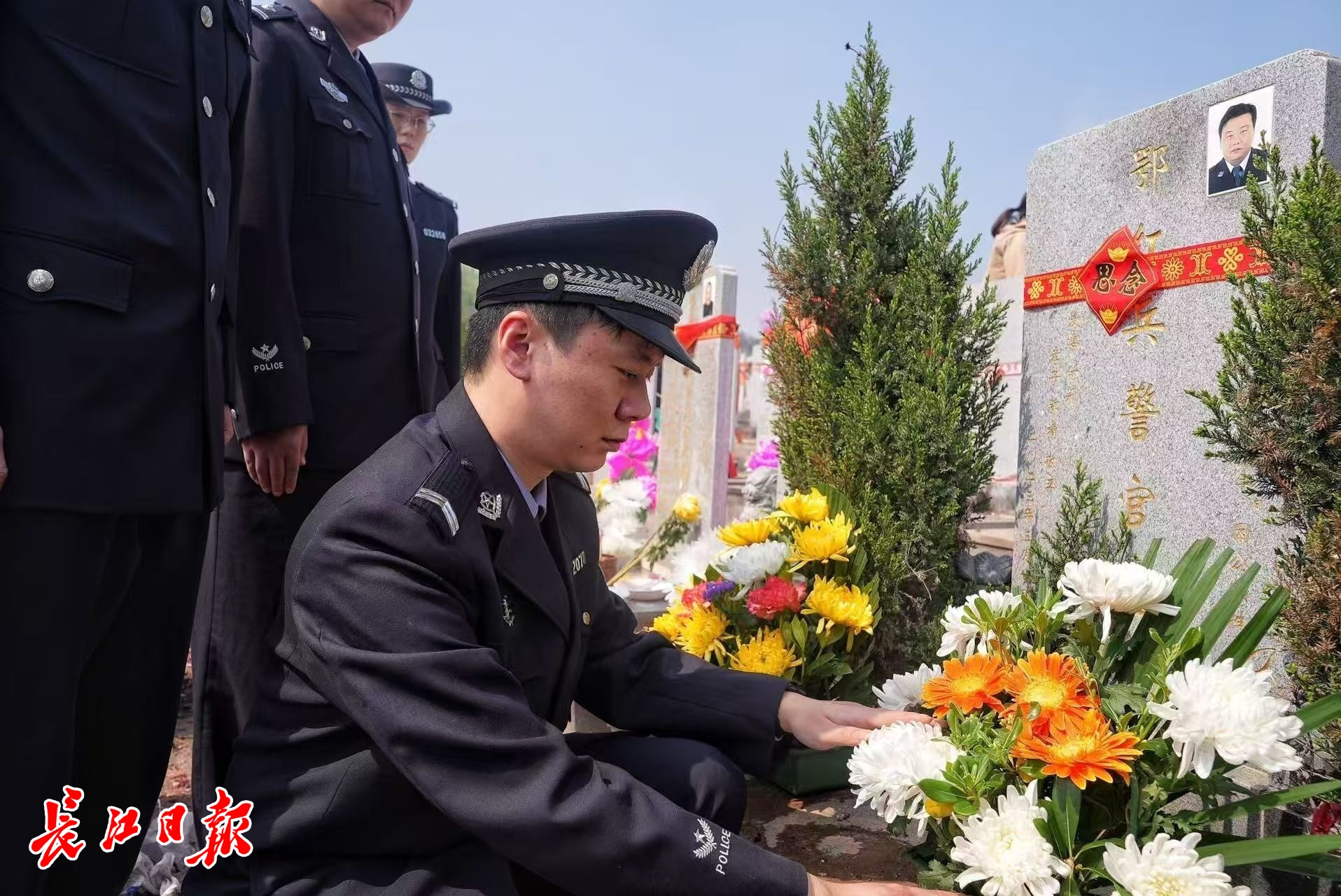 “老鄂啊,我们涂家沟人好想你。不过,你现在可以放心,小鄂接了你的班,跟你一样,做事认真,是个好民警。在我们大家心里,你的警号‘032078’从未离开!”陪同一起前来祭扫的涂家沟群众魏威等人纷纷向英雄献花。